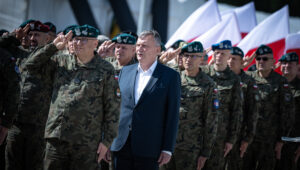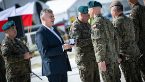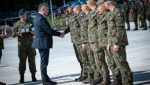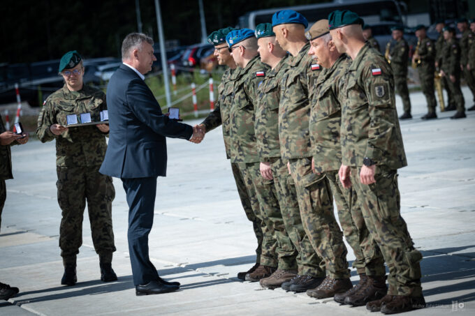Nie ma miękkiej gry – zagrożenia są realne, stoicie przed ogromnymi wyzwaniami. Ale macie też przyjaciół. Macie przyjaciół wśród lokalnych samorządowców – począwszy od sejmiku województwa, poprzez powiaty i gminy. Są dziś z nami samorządowcy, którzy was wspierają: prezydenci miast, burmistrzowie, wójtowie, a także panowie wojewodowie. Są obecne służby – dziękuję bardzo wszystkim, którzy wspierają naszych żołnierzy. (…) Z tego miejsca pragnę również bardzo serdecznie podziękować waszym rodzinom. To dzięki ich miłości i wyrozumiałości możecie prawidłowo pełnić swoją służbę – podkreślił wiceszef MON.