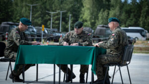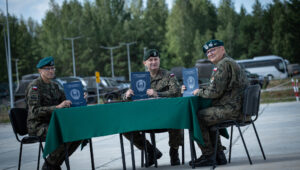 W imieniu wicepremiera Władysława Kosiniaka-Kamysza chcę wam bardzo serdecznie podziękować za służbę – żołnierzom 12. Dywizji Zmechanizowanej ze Szczecina oraz żołnierzom, którzy obejmują służbę tutaj na granicy, z 16. Dywizji Zmechanizowanej. Chcę bardzo serdecznie podziękować, a jednocześnie życzyć żołnierskiego szczęścia. To dla mnie honor i zaszczyt, że mogę dzisiaj razem z wami wręczać odznaczenia za służbę. Cieszyć się razem z tymi, którzy wracają zdrowi i cali – po wypełnieniu swojej służby – do swoich jednostek. Ale także być z tymi, którzy obejmują służbę – z wielkim honorem i szacunkiem. To wy narażacie swoje życie i zdrowie. Nie szczędzicie krwi i potu, żołnierskiego wysiłku, aby bronić granicy Rzeczypospolitej Polskiej – mówił podczas przekazania obowiązków dowodzenia operacją Bezpieczne Podlasie wiceminister Paweł Bejda.