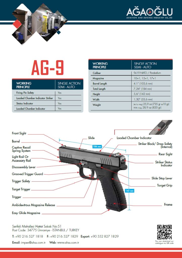 AĞAOĞLU Aviation and Defese Industry Co, LTD, pod marką AHSS, rozpoczął w tym roku produkcję broni strzeleckiej. To część konsorcjum AĞAOĞLU, działającego w obszarach budownictwa, nieruchomości, energetyki oraz turystyki. W Polsce dystrybuowana jest przez przedsiębiorstwo Malik-Malik, mające w swoim portfolio również takie marki jak ATA Arms czy Sabatti. W maju b.r. premierę miała pierwsza konstrukcja – pistolet FXS-9. (AHSS FXS 9×19 mm – nowy pistolet z Turcji już w Polsce).