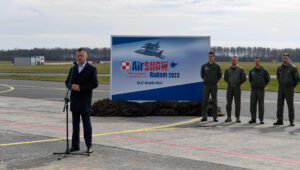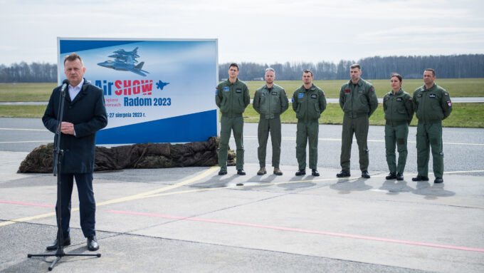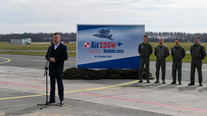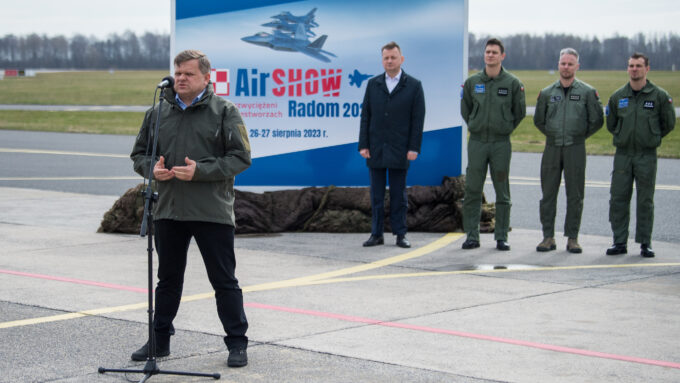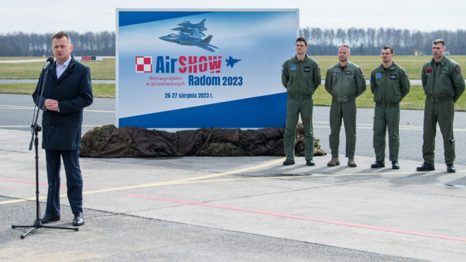 W piątek, 24 marca br., na lotnisku 42. Bazy Lotnictwa Szkolnego im. kpt. pil. Franciszka Żwirki i inż. Stanisława Wigury w Radomiu, wicepremier i minister obrony narodowej Mariusz Błaszczak oraz wiceminister Wojciech Skurkiewicz zaprezentowali informacje dotyczące Międzynarodowych Pokazów Lotniczych Air Show 2023 organizowanych pod hasłem Niezwyciężeni w przestworzach.