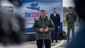 Wiceprezes Rady Ministrów przypomniał, że niebawem do Sił Powietrznych trafią nowe samoloty. Chciałbym bardzo mocno podkreślić, że polskie Siły Powietrzne się rozwijają, że ten rok będzie rokiem przełomowym. Od wielu lat nie mieliśmy do czynienia z wprowadzeniem do Polskich Sił Powietrznych nowych samolotów, a w tym roku właśnie FA-50 trafią na wyposażenie Polskich Sił Powietrznych. W przyszłym roku pierwsze F-35, a więc Polskie Siły Powietrzne się rozwijają. Ten rozwój służy bezpieczeństwu naszej Ojczyzny – powiedział.