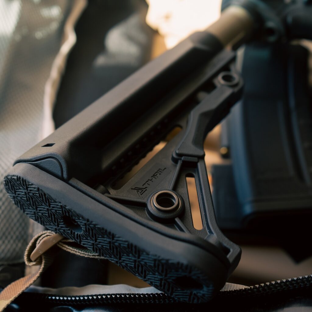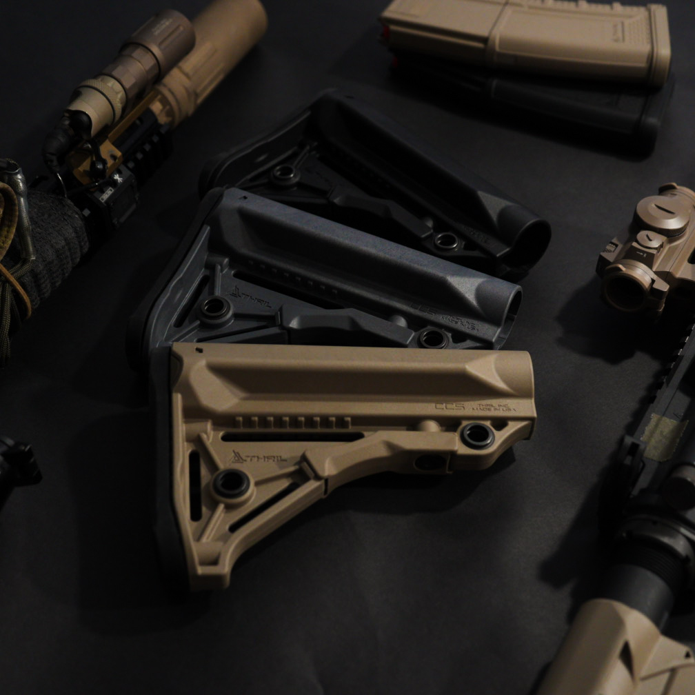 Pierwszym modelem kolby w ofercie THRiL jest Combat Competition Stock (CCS). Pełnowymiarowa kolba daje użytkownikowi swobodę w konfigurowaniu zawiesia za sprawą 2 punktów QD na każdej ze stron oraz 3 otworom do przewleczenia pasa. Gumowa stopka zapewnia przyczepność podczas celowania, a specjalna geometria zatrzasku minimalizuje ryzyko zaczepienia o elementy oporządzenia.