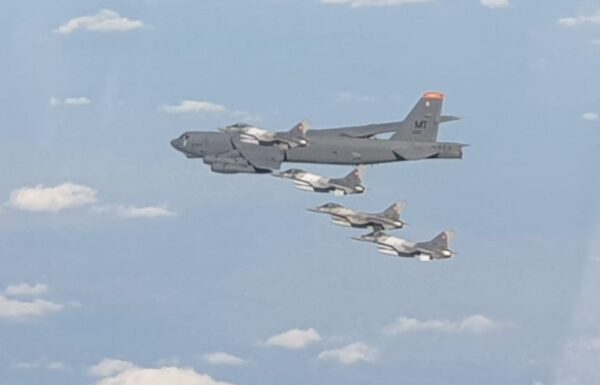 W poniedziałek trzy amerykański bombowce strategiczne B-52H przeleciały nad terytorium Ukrainy w asyście ukraińskich samolotów bojowych.