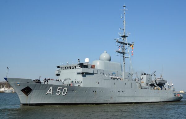 Od 23 do 24 kwietnia w gdyńskim porcie przebywał niemiecki okręt rozpoznania radioelektronicznego – FGS Alster (A 50), typu 423 Oste.