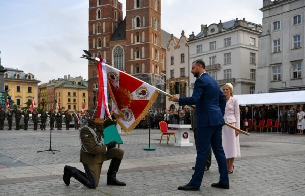 Na Rynku Głównym w Krakowie wicepremier i minister obrony narodowej Władysław Kosiniak-Kamysz wziął udział w uroczystości wręczenia sztandaru Dowództwu 2. Korpusu Polskiego – Dowództwu…