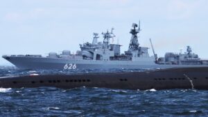 Rosyjski okręt szedł razem z fregatą rakietową zwalczania okrętów podwodnych RFS Wice-Admirał Kułakow (626) projektu 1155 Friegat (Udałoj) i oceanicznym holownikiem ratowniczym Ałtaj projektu 1452 Pamir/Inguł z Sankt Petersburga w rejon swojego stacjonowania na Półwyspie Kolskim. Jednostki brały udział w głównej defiladzie morskiej z okazji 325. rocznicy powstania rosyjskiej marynarki wojennej (Defilada morska w Sankt Petersburgu).