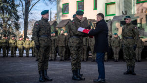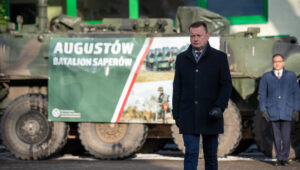 W przypadku północno-wschodniej części naszego kraju istotne znaczenie ma konieczność wzmocnienia granicy, zarówno z Białorusią, jak również z obwodem Królewieckim. To właśnie saperzy jesienią 2021 roku stanęli w gotowości do wzmocnienia polskiej granicy, to saperzy najpierw wznieśli ogrodzenie tymczasowe, wzmocnili granicę i wciąż na granicy służą. Dowódca tej jednostki był na granicy w pierwszych dniach ataku hybrydowego jesienią 2021 roku. Jest doświadczonym oficerem i daje gwarancję tego, że będzie tworzył ten batalion – zaznaczył szef MON.