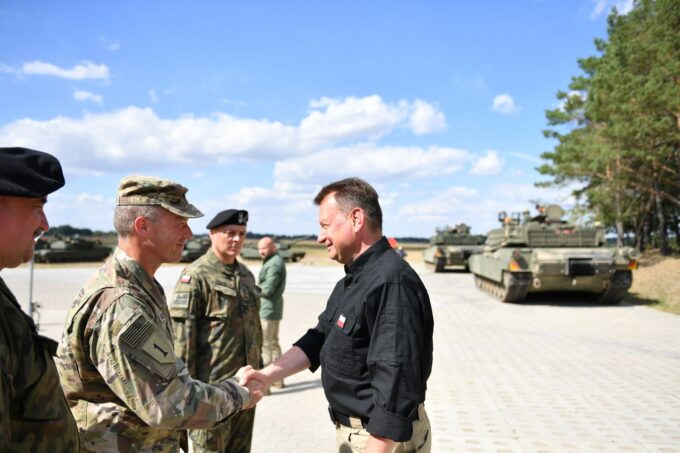 Naszym celem jest to, żeby czołgi kiedy tafią już na wyposażenie Wojska Polskiego mogły być obsługiwane przez przeszkolonych żołnierzy i tak się stanie, już w przyszłym roku. (…) Zależy nam również na interoperacyjności, a więc na budowaniu interoperacyjności z wojskiem Stanów Zjednoczonych. Generał Kolasheski jest dowódcą V Korpusu US Army, element wysunięty tego korpusu na stałe stacjonuje w Polsce i to stąd żołnierze amerykańscy na całej wschodniej flance Sojuszu Północnoatlantyckiego są dowodzeni, właśnie z Poznania, z Polski. To bardzo dobra wiadomość, dlatego, że ona buduje właśnie zdolności obronne Rzeczypospolitej Polskiej, ta współpraca między Wojskiem Polskim a wojskiem Stanów Zjednoczonych. Fakt stałej obecności V Korpusu US Army oraz fakt wspólnych ćwiczeń żołnierzy polskich i żołnierzy amerykańskich – mówił szef MON.