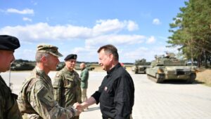 Naszym celem jest to, żeby czołgi kiedy tafią już na wyposażenie Wojska Polskiego mogły być obsługiwane przez przeszkolonych żołnierzy i tak się stanie, już w przyszłym roku. (…) Zależy nam również na interoperacyjności, a więc na budowaniu interoperacyjności z wojskiem Stanów Zjednoczonych. Generał Kolasheski jest dowódcą V Korpusu US Army, element wysunięty tego korpusu na stałe stacjonuje w Polsce i to stąd żołnierze amerykańscy na całej wschodniej flance Sojuszu Północnoatlantyckiego są dowodzeni, właśnie z Poznania, z Polski. To bardzo dobra wiadomość, dlatego, że ona buduje właśnie zdolności obronne Rzeczypospolitej Polskiej, ta współpraca między Wojskiem Polskim a wojskiem Stanów Zjednoczonych. Fakt stałej obecności V Korpusu US Army oraz fakt wspólnych ćwiczeń żołnierzy polskich i żołnierzy amerykańskich – mówił szef MON.