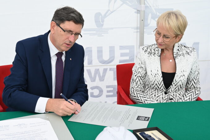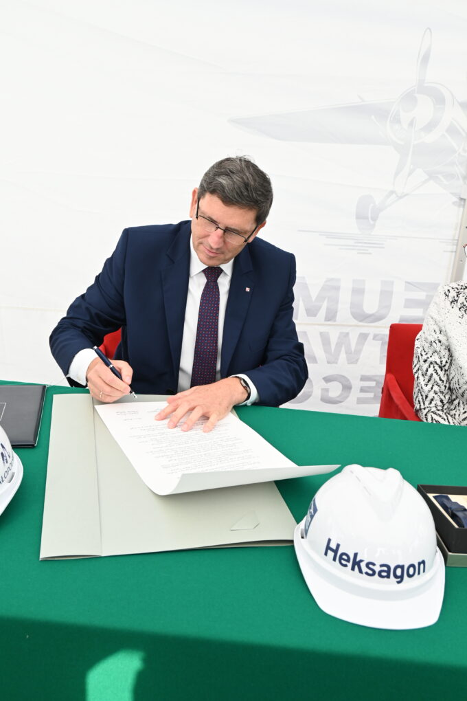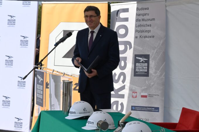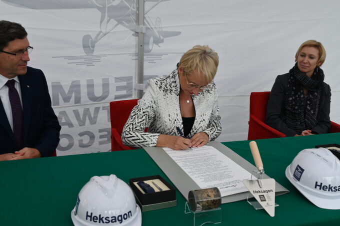 W czwartek, 5 października, w Muzeum Lotnictwa Polskiego w Krakowie odbyła się uroczystość wmurowania kamienia węgielnego pod budowę nowej inwestycji – hangaru Heksagon. Umowę w tej sprawie podpisano 20 kwietnia br. (Rusza budowa hangaru Heksagon w Muzeum Lotnictwa Polskiego).