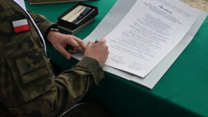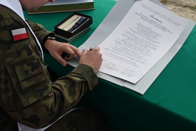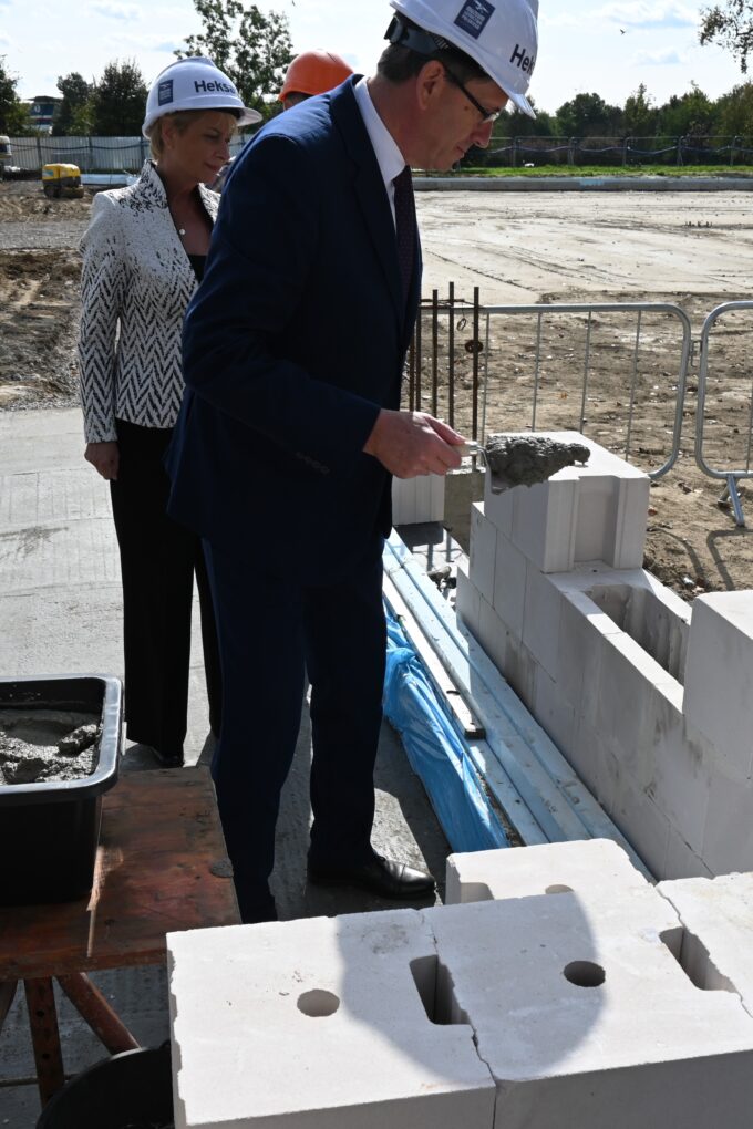Tomasz Kosecki i Iwona Gibas wspólnie podpisali akt erekcyjny, który następnie, wraz z symbolicznym kamieniem węgielnym, umieścili w specjalnie na te potrzeby stworzonej tubie. Całość została poświęcona przez ks. ppor. Pawła Zieję, a następnie zapieczętowana i zamurowana w świeżo wybudowanych fundamentach,