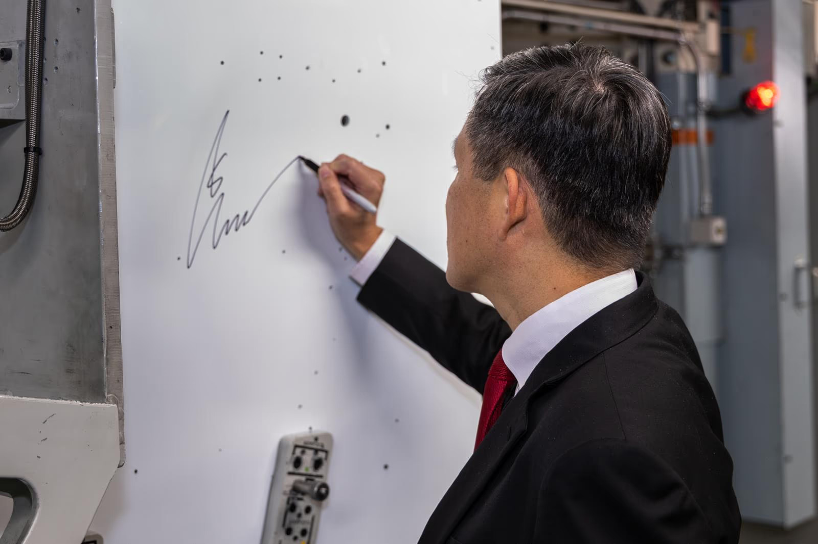 Singapore's Minister for Defence and Chief of Airforce signed the wing of RSAF's first F-35 at our @LockheedMartin F-35 production line in Fort Worth, TX. We're so excited to see the RSAF's fleet take shape.📷 pic.twitter.com/Cnqy3qPyP9