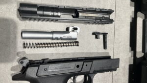 Jako ciekawostkę opiszę jeszcze proces rozkładania broni. Otóż dźwignia zrzutu zamka jest jednocześnie elementem blokującym. Aby ją wyjąć, należy zamek odciągnąć maksymalnie do tyłu. Maksymalnie, czyli dalej niż w przypadku innej broni, gdzie wystarczy zamek zatrzymać w tylnym położeniu. Ta informacja zapewne przyda się nowym użytkownikom, którzy dotąd nie rozkładali broni w tym systemie, i zaoszczędzi im uderzania młotkiem czy magazynkiem w dźwignię.