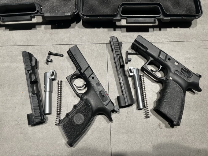 W zestawie otrzymujemy dwa magazynki o pojemności 17 naboi oraz wycior i szczotkę do lufy. Złoty standard – uwag brak. Pudełka spełniają swoją rolę. Oczywiście to nowsze jest ładniejsze ze względu na srebrny kolor loga na wieczku. Po otwarciu pudełek na pierwszy rzut oka widać zmiany w designie pistoletów. Bez dwóch zdań to nadal jest CZ, jednak nowa wersja nabrała bardzo fajnego agresywnego wyglądu. Stało się to dzięki dwóm zabiegom. Pierwszym z nich jest zmiana struktury chwytu. Stary model miał dość delikatną strukturę.