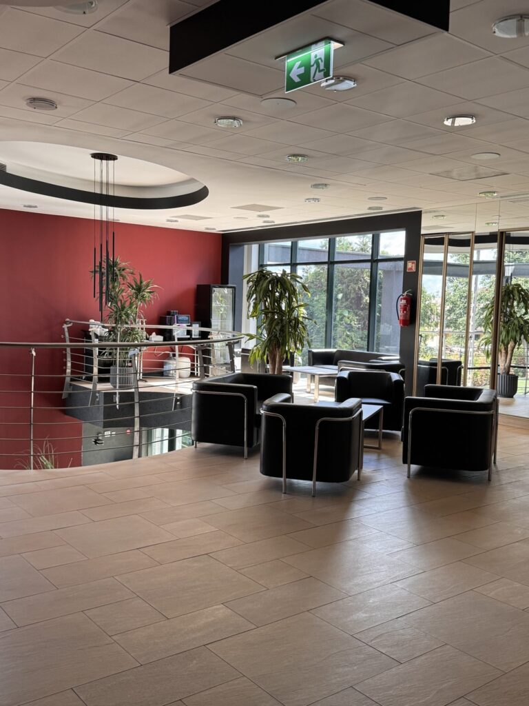 Dla wszystkich odwiedzających nas klientów, na części działki przeznaczonej pod dalszą rozbudowę CSJ, przygotowaliśmy dodatkową strefę parkingową, tak więc miejsc do zaparkowania samochodów nie powinno zabraknąć. Ponadto na parkingu przed wejściem głównym będą dostępne dwa miejsca parkingowe z możliwością doładowania samochodów elektrycznych z ładowarek o mocy 22kW każda.