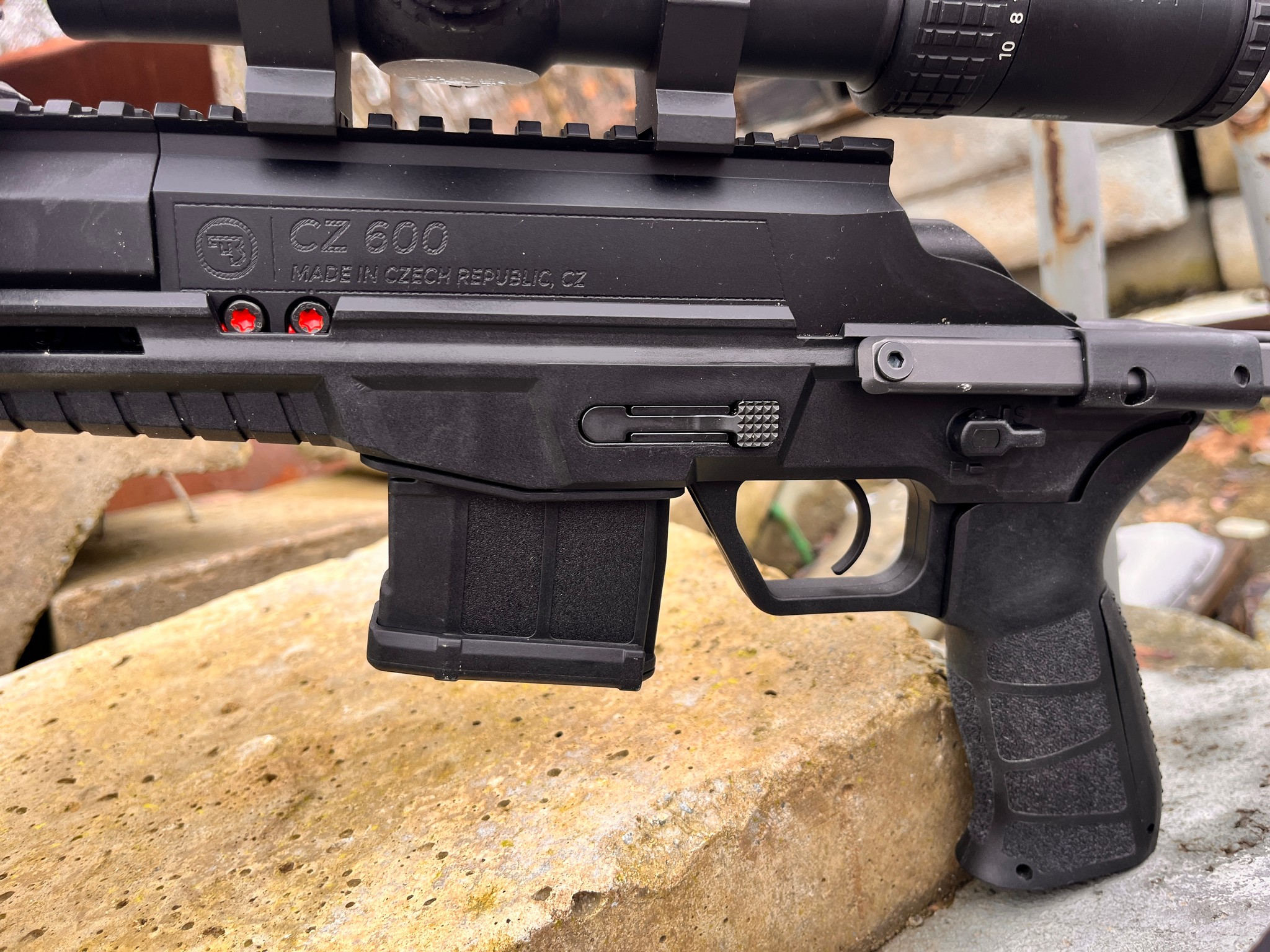 Oczywiście ze względu na fakt, że CZ 600 to czterotakt, szybkie strzelanie nigdy nie dorówna karabinkom samopowtarzalnym. Jednak muszę podkreślić, że wszystkie mechanizmy pracują płynnie i precyzyjnie. Nie jestem w stanie stwierdzić, czy karabinek wymagał jakiegoś docierania – nie dotarł do mnie nowy. Jednak na plus zaliczam pracę spustu oraz mechanizmu przeładowania. Trzeba jednak pamiętać, że aby odryglować zamek, bezpiecznik musi być ustawiony w pozycji odbezpieczonej. Zresztą, podobnie jak w AR15 – nie da się broni zabezpieczyć, jeśli kurek nie jest napięty.