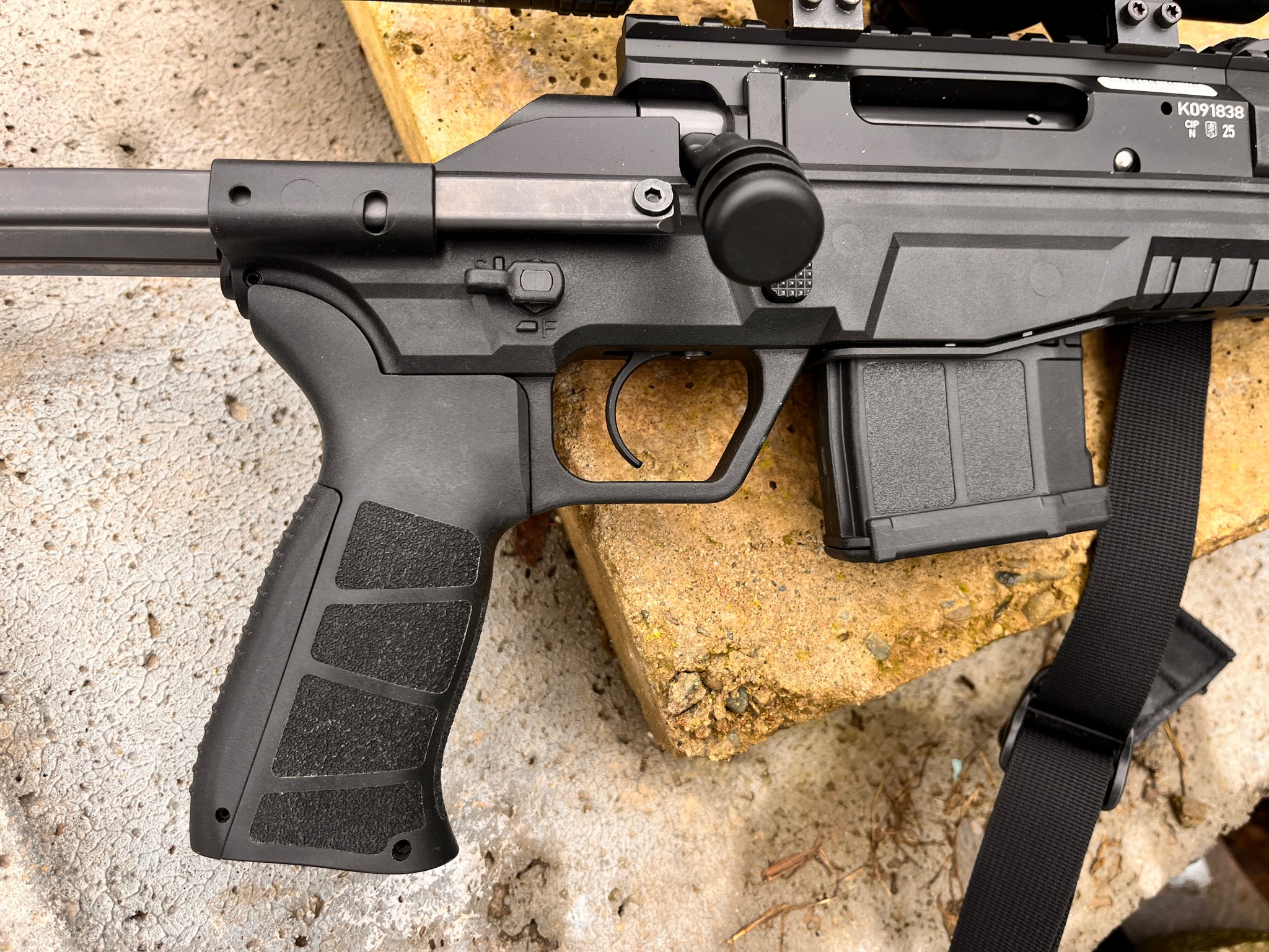 Na plus zaliczam umiejscowienie manipulatorów tożsame z AR15, chociaż przy obsłudze spustu kciukiem często zdarzało mi się trafiać w montaż kolby. Bezpiecznik i zwalniacz magazynka są obustronne.