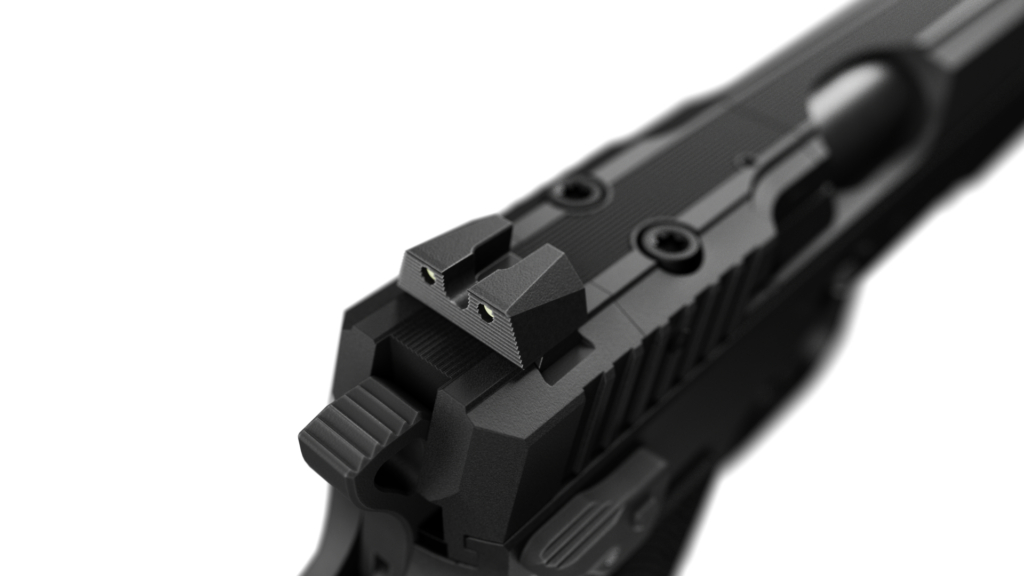 Pistolet swoimi kształtami czerpie inspirację ze sportowego Shadow 2. Zamek cechuje się nacięciami na jego przedniej oraz tylnej cześci, metalowymi przyrzadami celowniczymi z luminescencyjnymi punktami oraz gniazdem kolimatora w standardzie Shield RMSc/Holosun K (montaż bezpośredni).