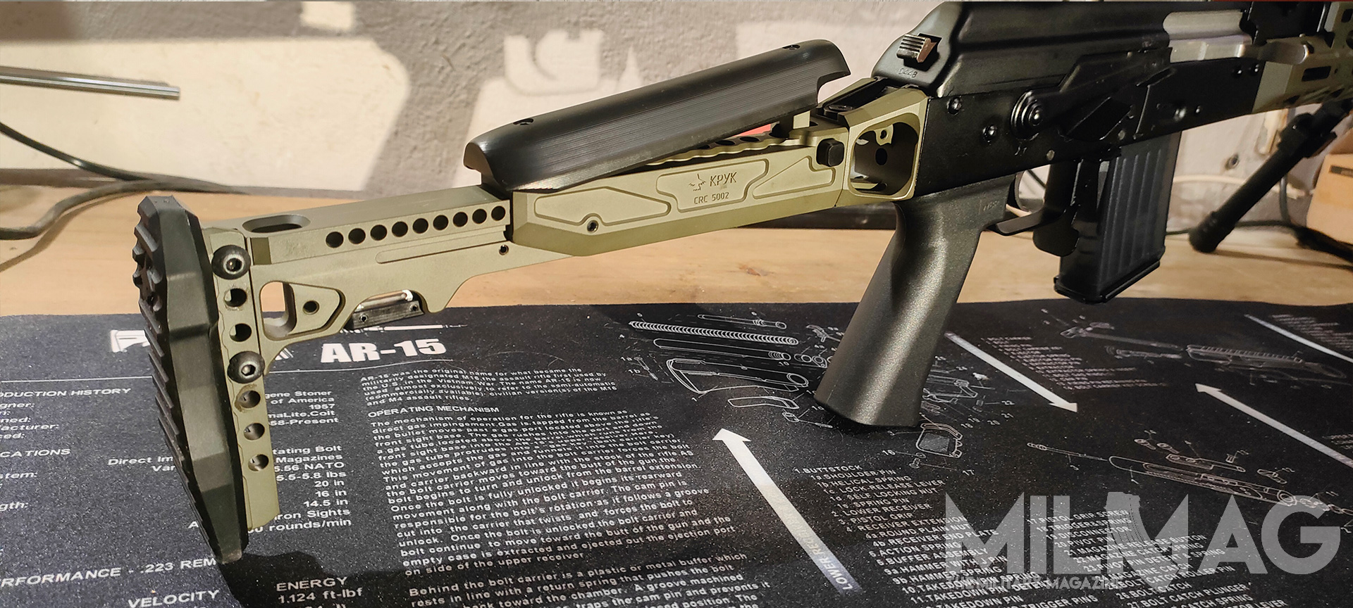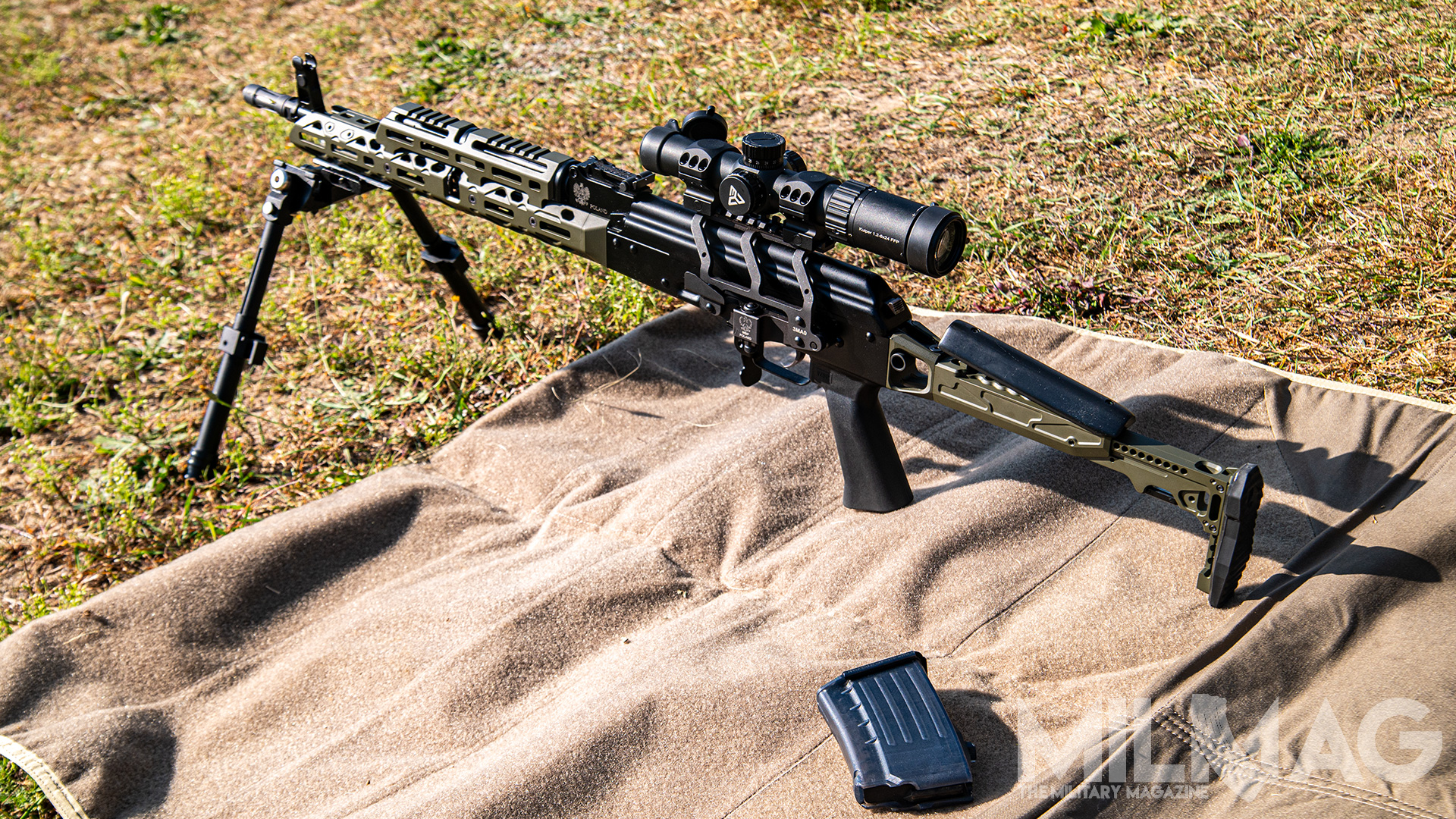 Do czego zmierzam – AKM to broń podstawowa piechoty. Do zastosowań specjalistycznych powstawały jego wariacje. Krótka lufa i składana kolba do CQB lub dla załóg pojazdów, długa lufa z dwójnogiem i większym magazynkiem jako ręczny karabin maszynowy itd. Czy zatem można z podstawowego kałacha zrobić coś na kształt Recce Rifle/ MPR, korzystając jedynie z akcesoriów od producenta*? Postanowiłem to sprawdzić.