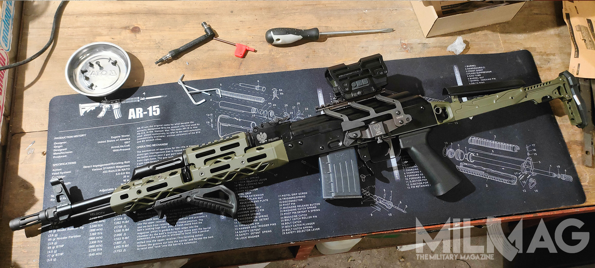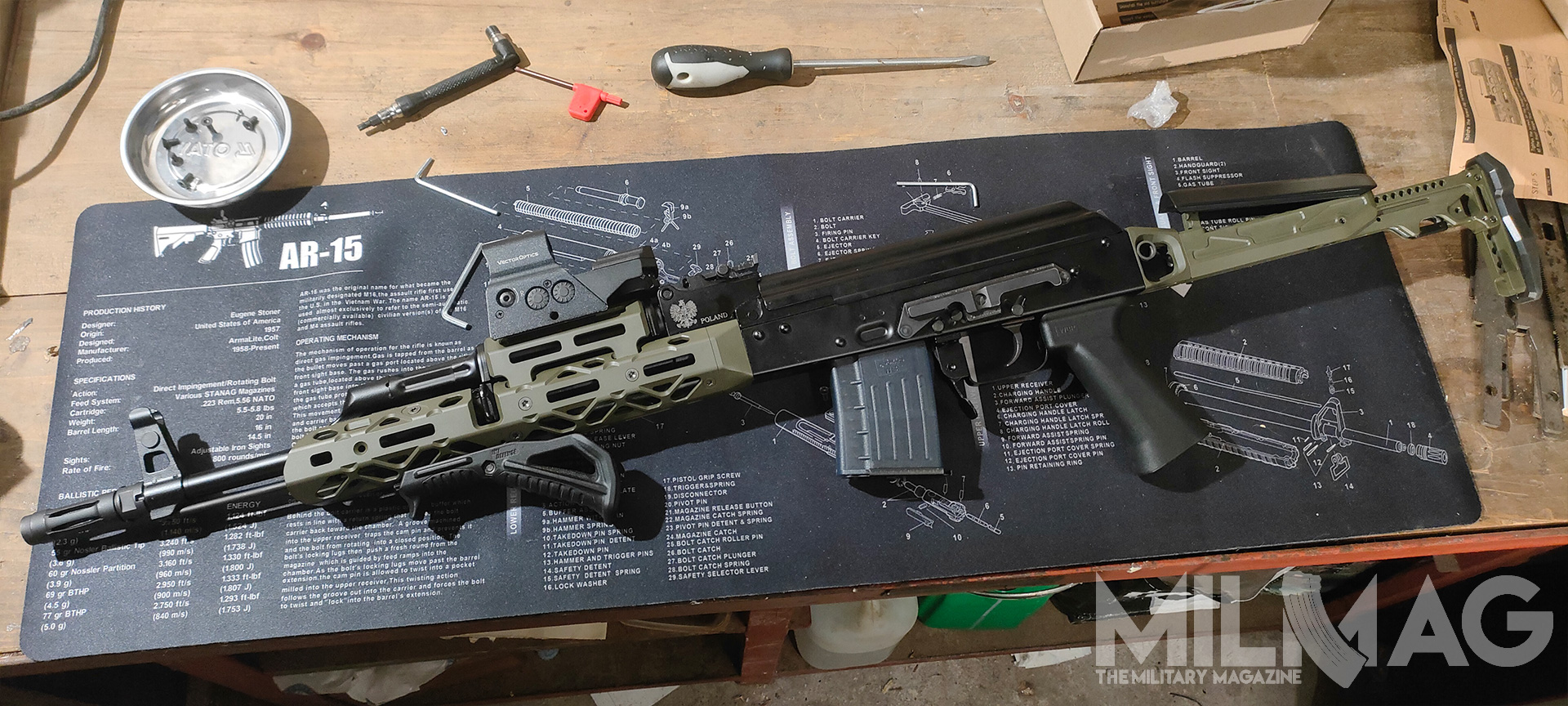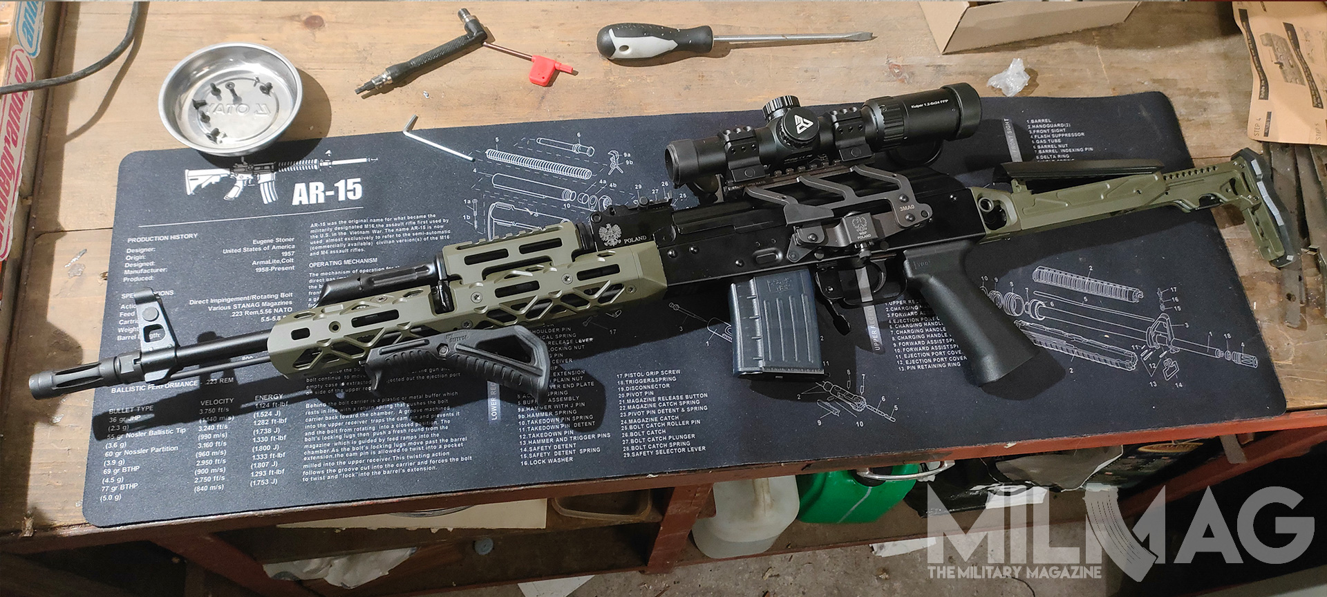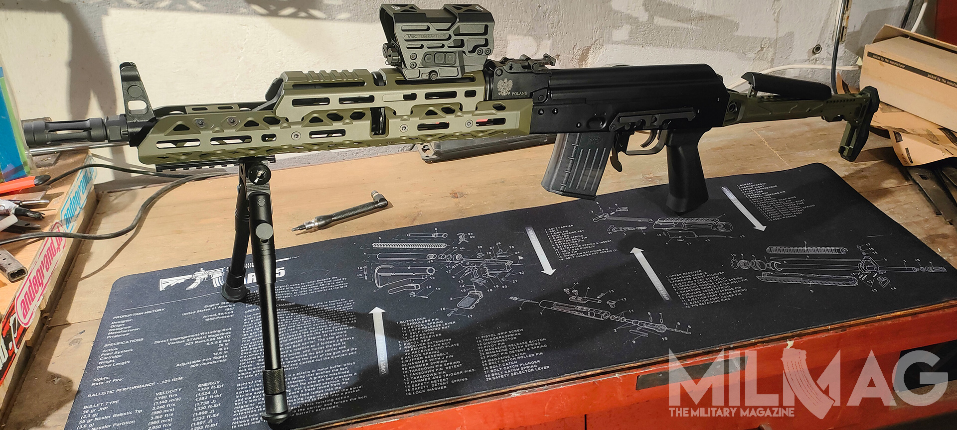 Nie ma miejsca na montaż optyki, nie ma miejsca na latarkę czy dodatkowy chwyt przedni, mało przestrzeni dla ręki na łożu, zero gniazd QD, ciężkie to jak nieszczęście, wyważone jak komentarze użytkowników Twittera (nie namówicie mnie na używanie nazwy X), większość napraw wykonuje się młotkiem i łomem, a słynna niezawodność to sowiecka propaganda, bo przecież ruskie musi być najlepsze. Skoro formalności mamy za sobą, przejdźmy do prób zmiany tego absurdalnego stanu rzeczy – na ile to możliwe.
