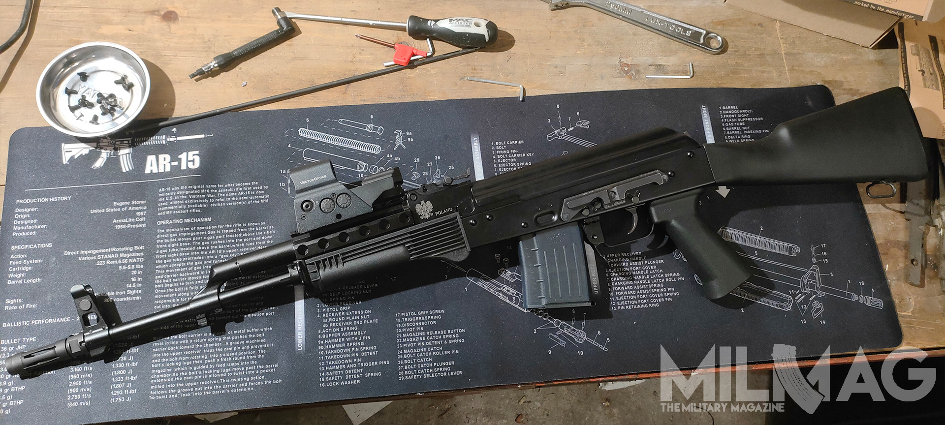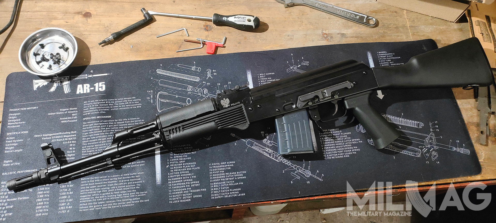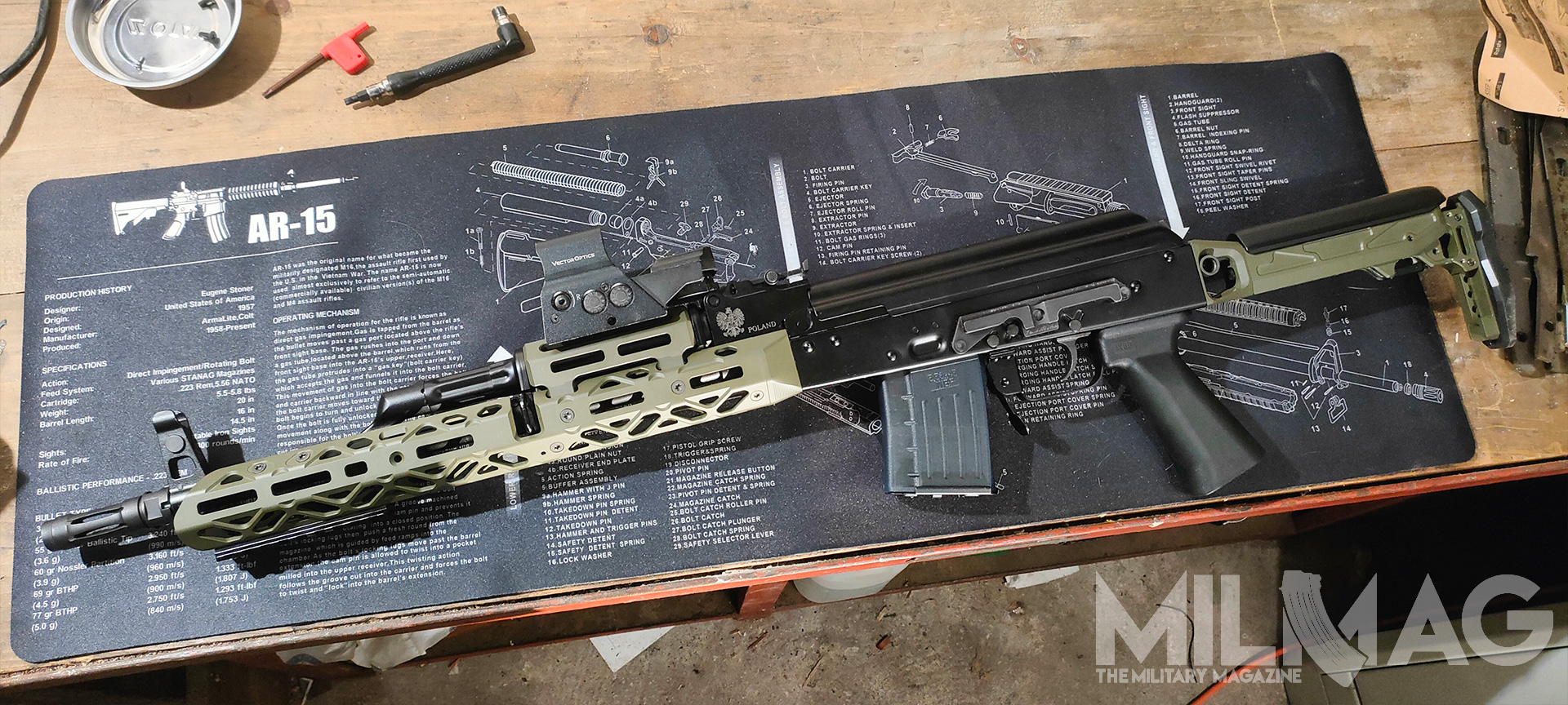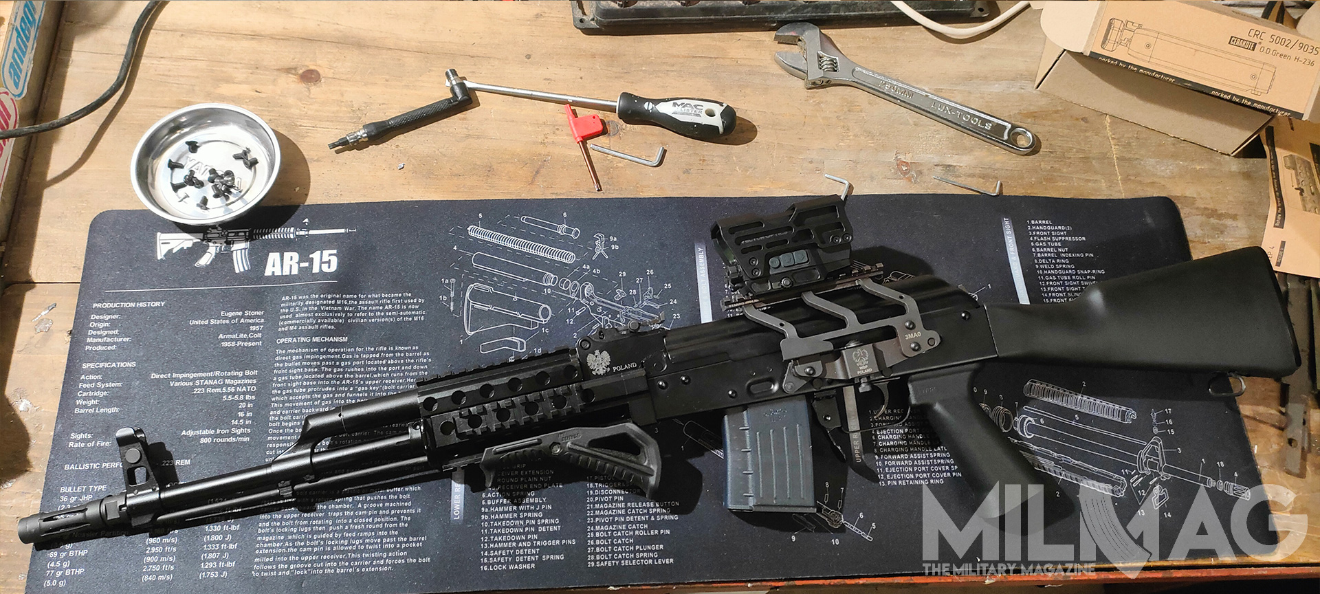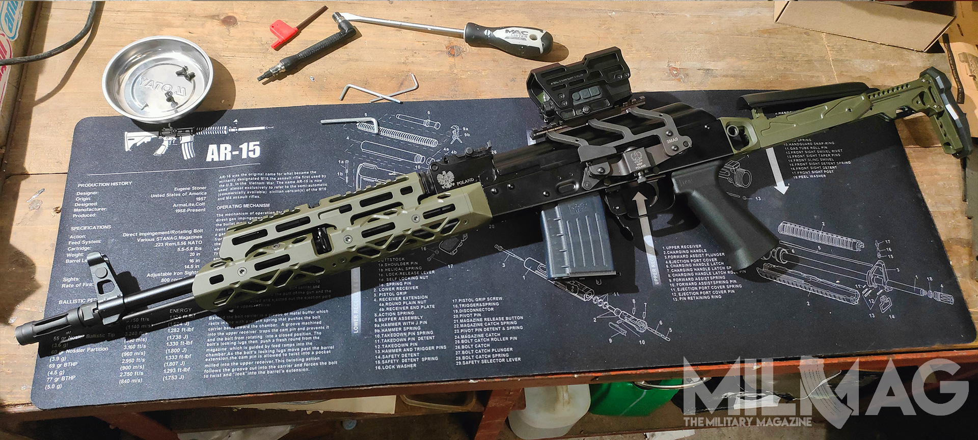 Nie ma miejsca na montaż optyki, nie ma miejsca na latarkę czy dodatkowy chwyt przedni, mało przestrzeni dla ręki na łożu, zero gniazd QD, ciężkie to jak nieszczęście, wyważone jak komentarze użytkowników Twittera (nie namówicie mnie na używanie nazwy X), większość napraw wykonuje się młotkiem i łomem, a słynna niezawodność to sowiecka propaganda, bo przecież ruskie musi być najlepsze. Skoro formalności mamy za sobą, przejdźmy do prób zmiany tego absurdalnego stanu rzeczy – na ile to możliwe.