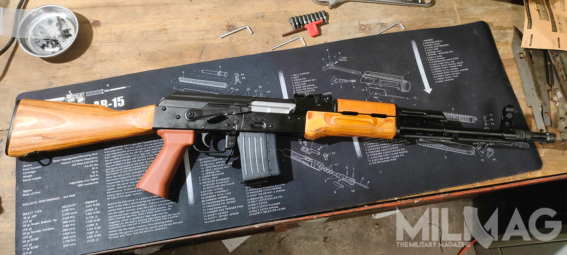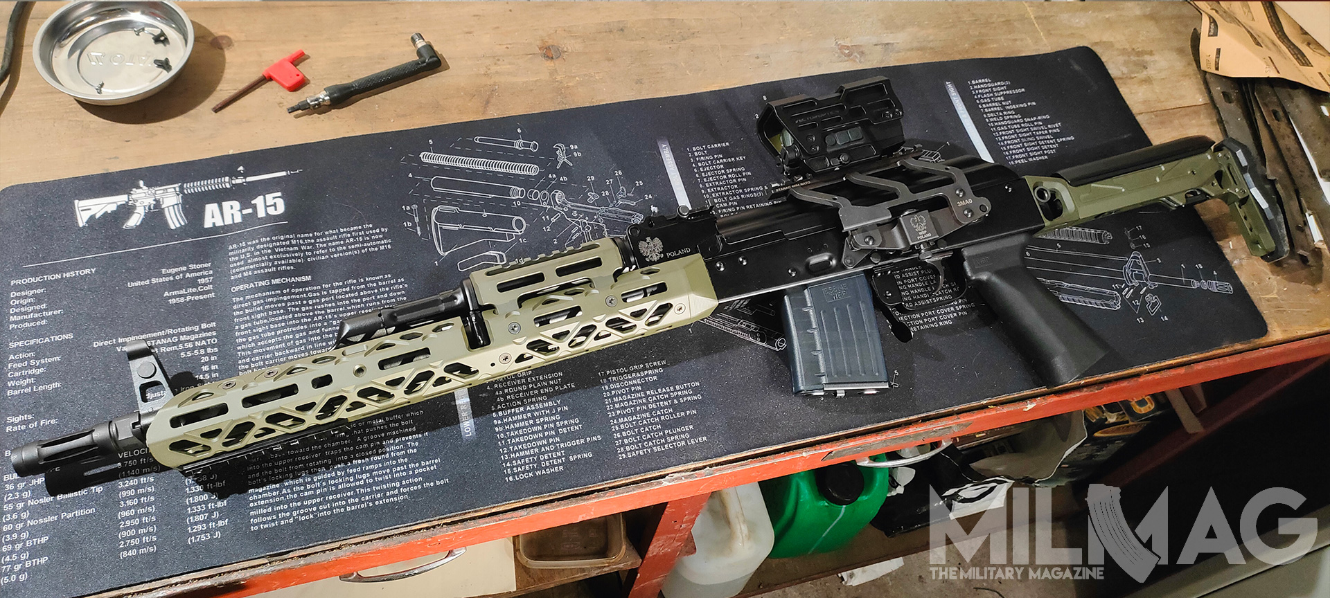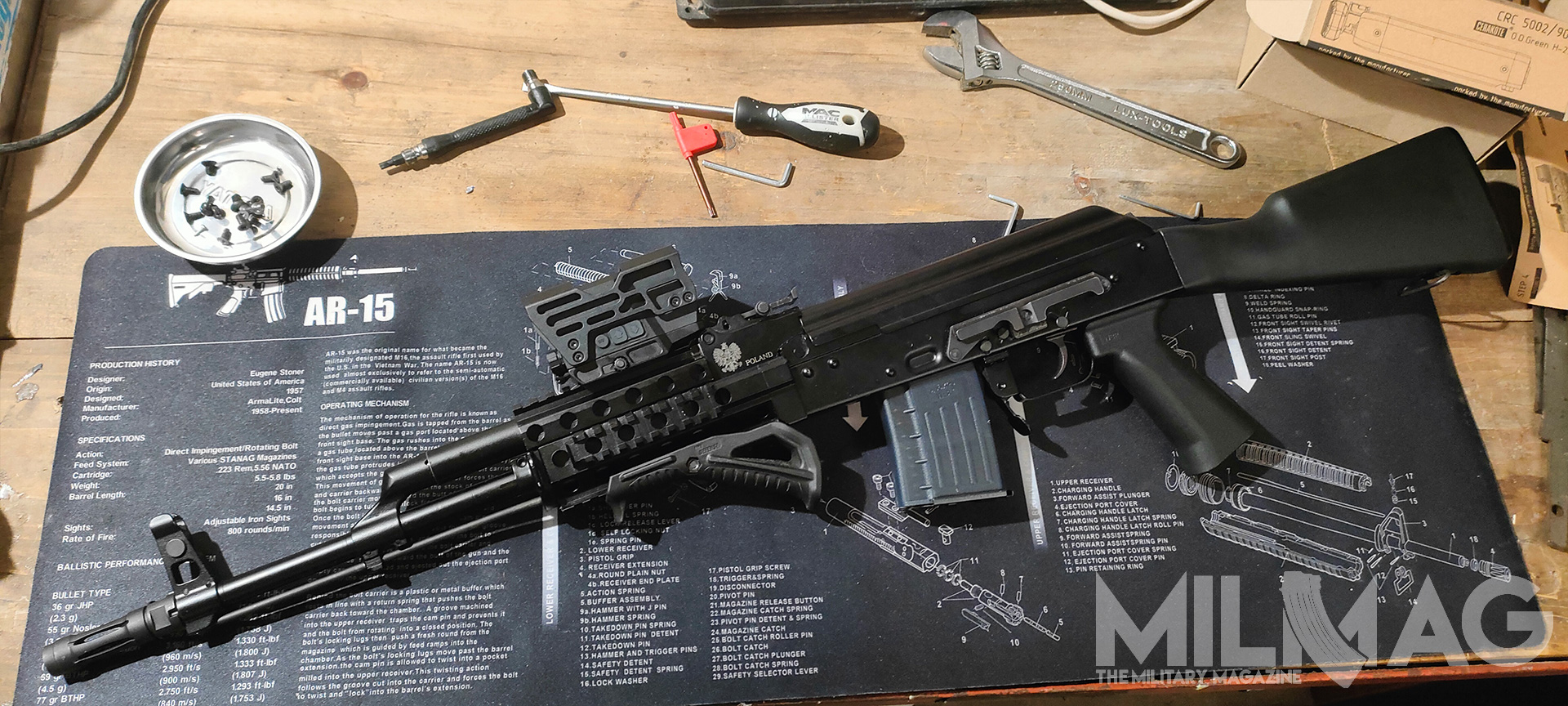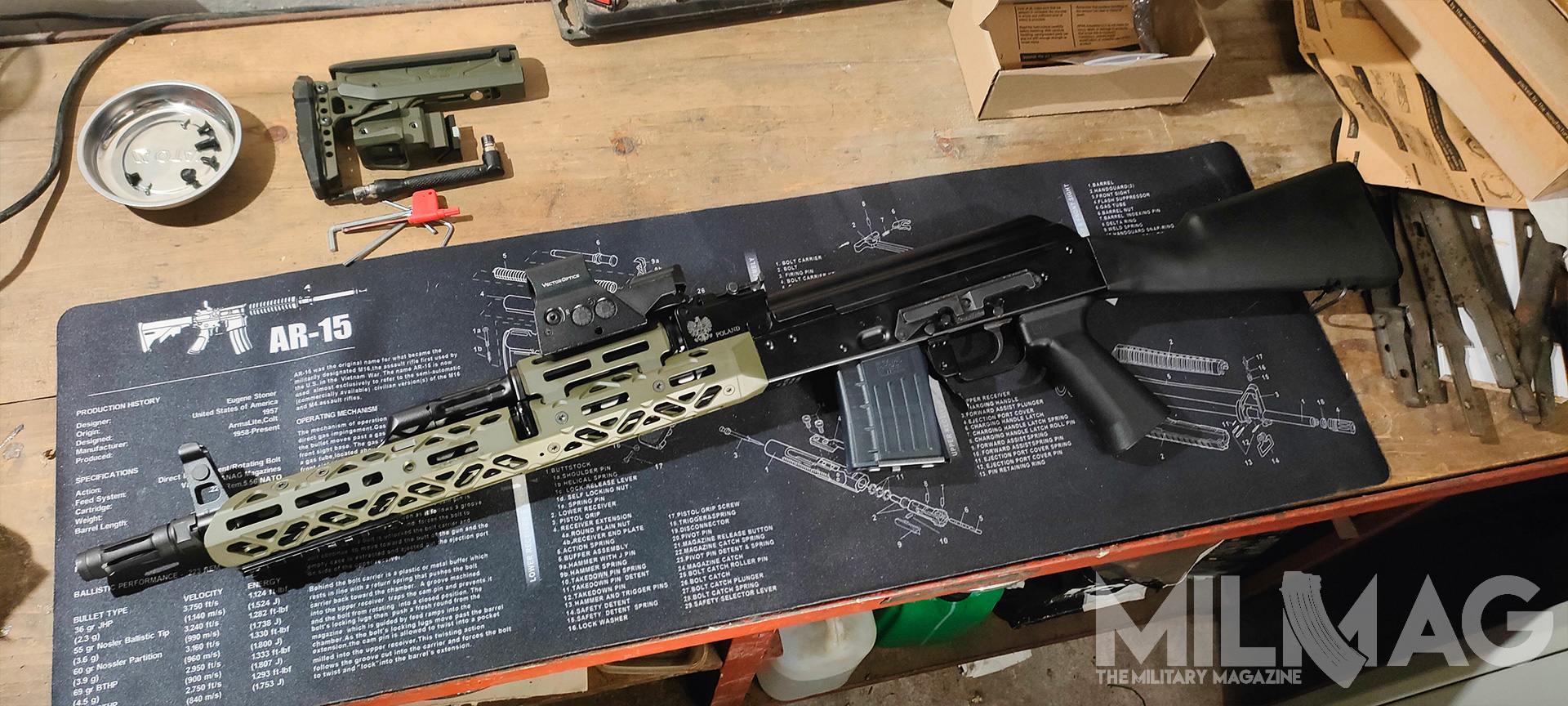 Nie ma miejsca na montaż optyki, nie ma miejsca na latarkę czy dodatkowy chwyt przedni, mało przestrzeni dla ręki na łożu, zero gniazd QD, ciężkie to jak nieszczęście, wyważone jak komentarze użytkowników Twittera (nie namówicie mnie na używanie nazwy X), większość napraw wykonuje się młotkiem i łomem, a słynna niezawodność to sowiecka propaganda, bo przecież ruskie musi być najlepsze. Skoro formalności mamy za sobą, przejdźmy do prób zmiany tego absurdalnego stanu rzeczy – na ile to możliwe.