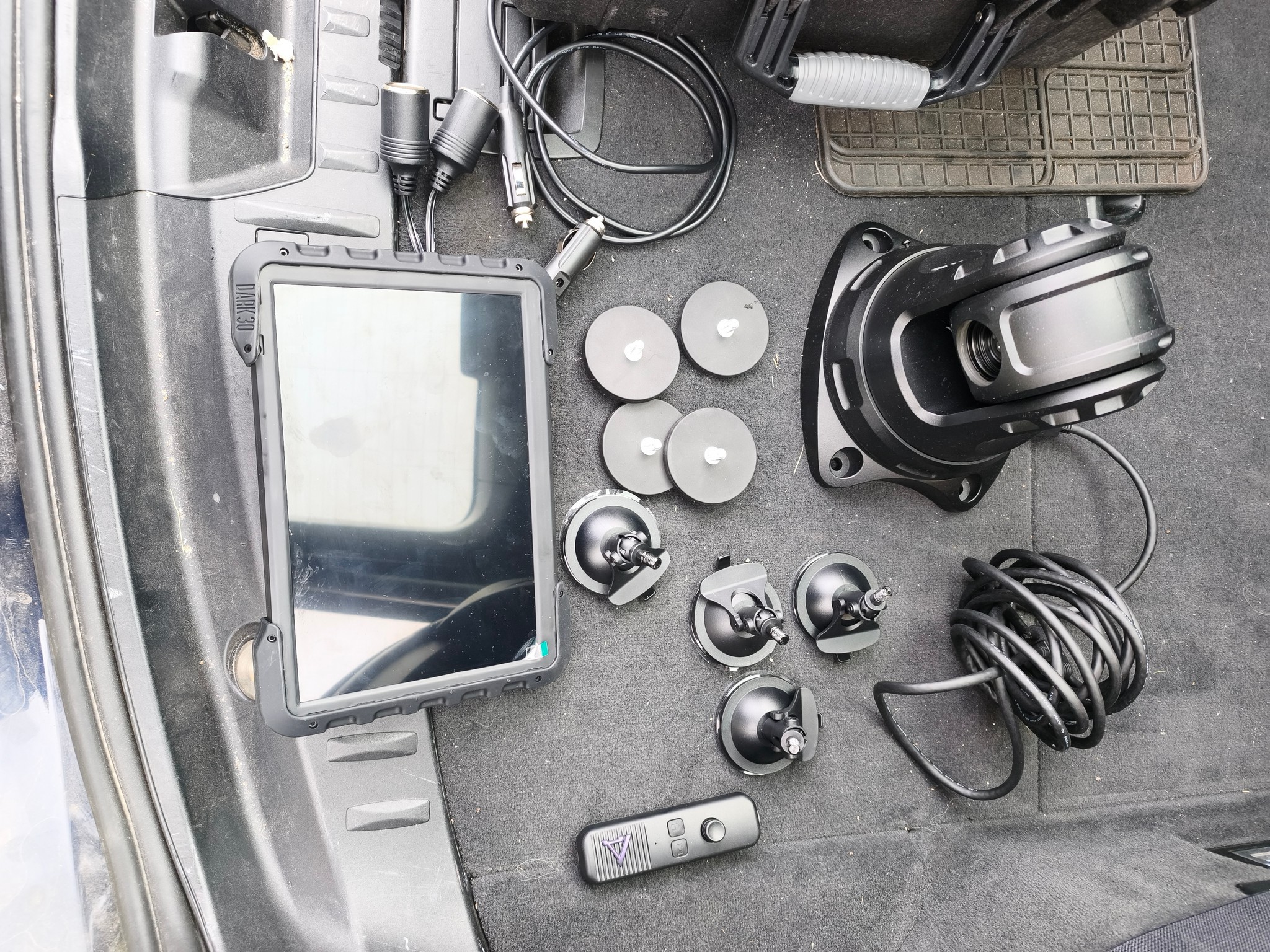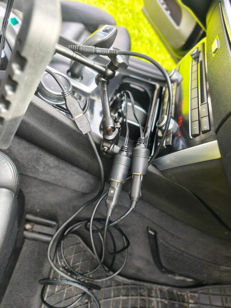 W następnej części testu cały system został podpięty zgodnie z przeznaczeniem, czyli do samochodu. Sama kamera testowana była na uchwytach magnetycznych, które trzymają z siłą 45 kg. Z tego względu podłożyłem pod uchwytami gumowy podkład w celu zabezpieczenia powierzchni dachu przed zarysowaniami.