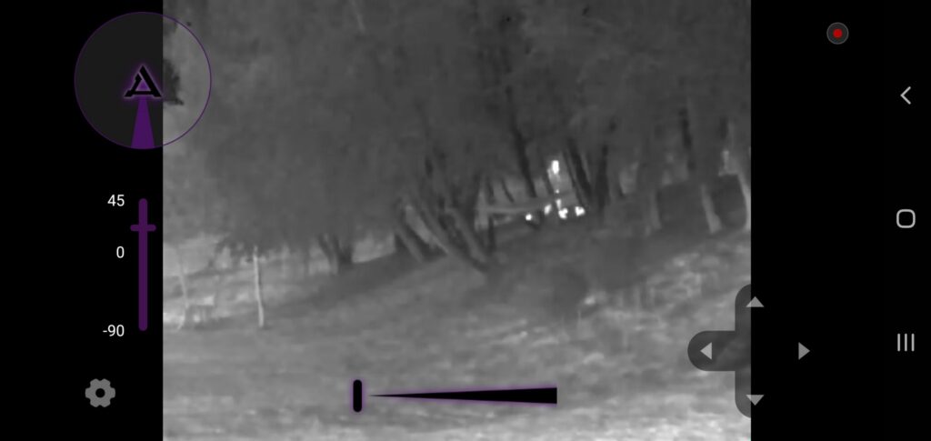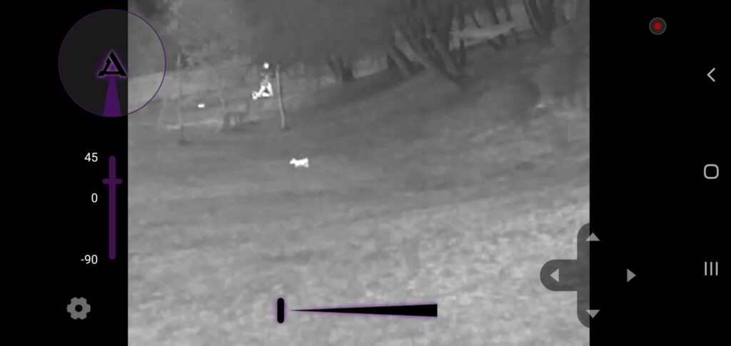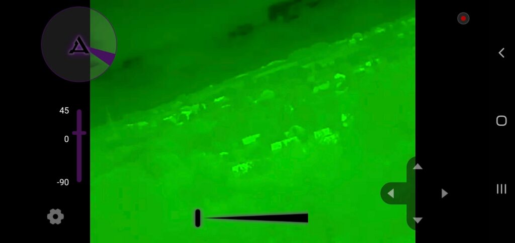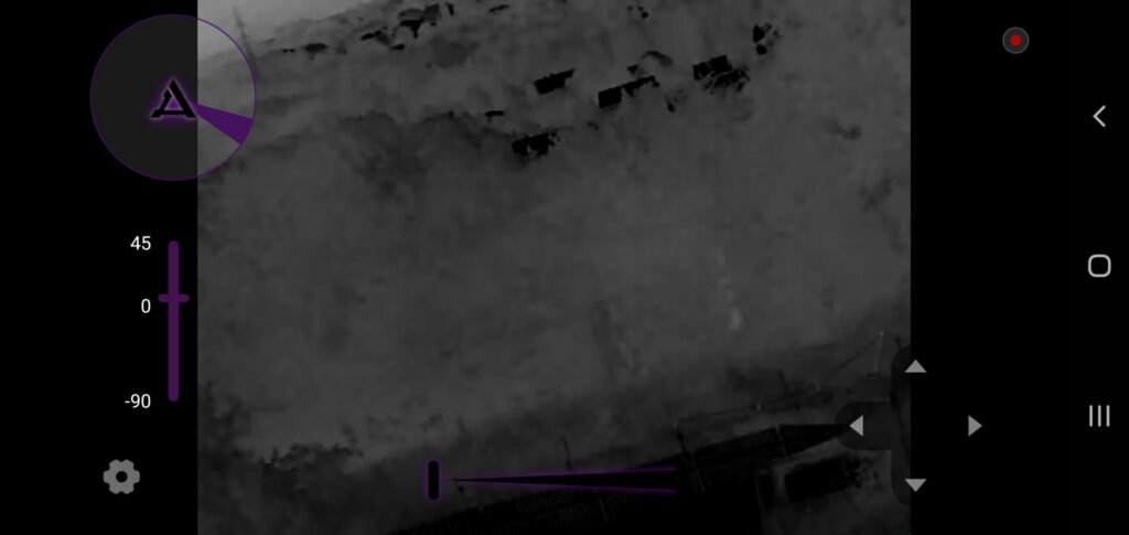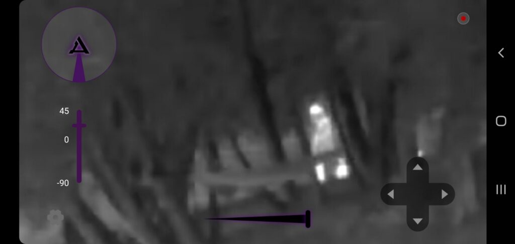 Powiększenie x4,5 w żaden sposób nie pomaga przy mocno oddalonych obiektach. Zawężone pole widzenia sprawia, że ciężko stwierdzić, z jakim obiektem mamy do czynienia. W prezentowanej konfiguracji kamera Dark30 jest urządzeniem służącym przede wszystkim do wyszukania obiektu emitującego ciepło. Jednakże o dokładnej identyfikacji rozpoznanego celu można zapomnieć.