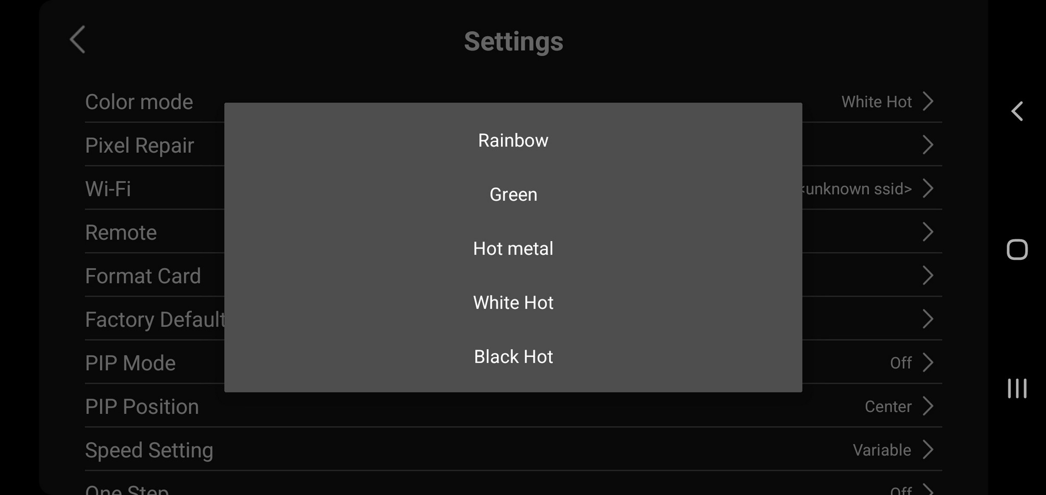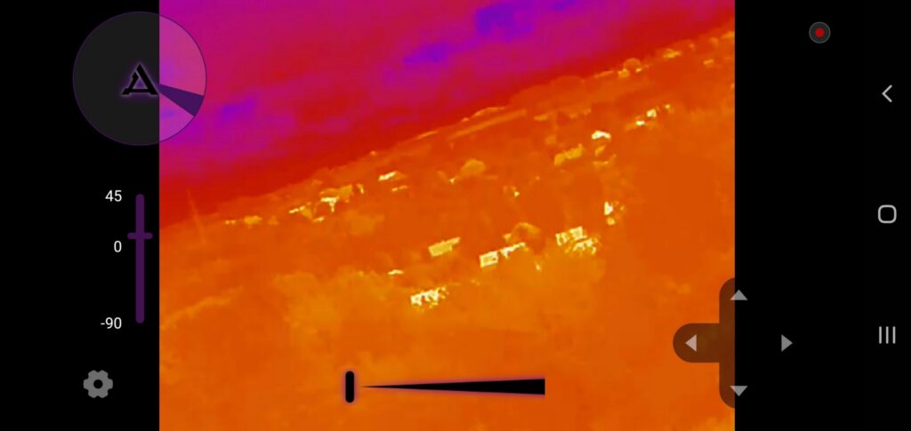 Dark30 ma możliwość połączenia się z telefonem komórkowym poprzez wi-fi kamery i ta funkcja wyjątkowo przypadła mi do gustu. Wystarczy ściągnąć dedykowaną aplikację ze sklepu Google Apps (lub z App Store w przypadku iOS, czego sam nie testowałem, ponieważ nie posiadam urządzeń firmy Apple) i wyszukać urządzenie w zakładce wi-fi swojego telefonu. Dzięki tej funkcji można nie tylko podglądać obraz, ale również mieć dostęp do wszystkich funkcji oraz pełnej obsługi naszej termowizji.