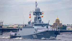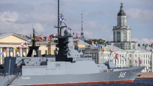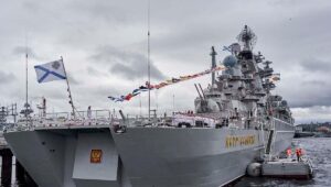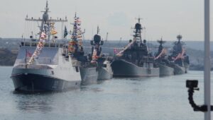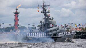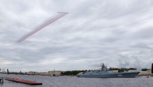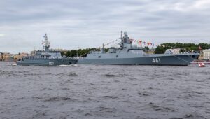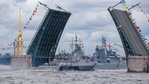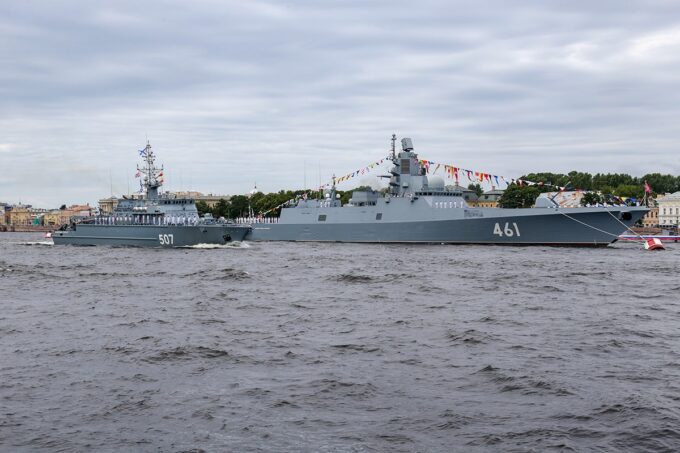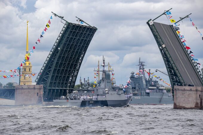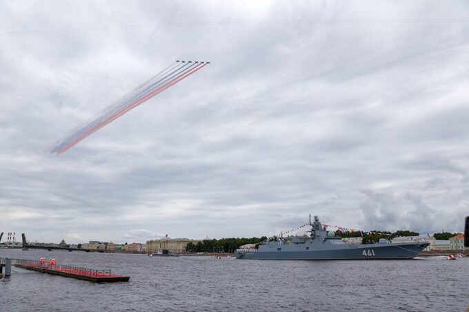 25 lipca, jak w każdą ostatnią niedzielę tego miesiąca każdego roku, w Rosji odbywają się uroczyste obchody Dnia Marynarki Wojennej (WMF). W tym roku, w 325. rocznicę powstania tej formacji zbrojnej, prezydent Władimir Putin, minister obrony gen. Siergiej Szojgu i głównodowodzący WMF adm. Nikołaj Jewmenow odebrali defiladę morską z udziałem ponad 50 okrętów nawodnych i podwodnych, 4000 oficerów i marynarzy, 48 samolotów i śmigłowców, w tym gościnnie jednostek pływających z Iranu, Indii i Pakistanu.