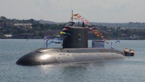 Wśród defilujących okrętów podwodnych znalazły się trzy z Floty Północnej o napędzie jądrowym: zmodyfikowany strategiczny K-549 Kniaź Władimir projektu 955A Boriej-A, uderzeniowy K-266 Orioł projektu 949A Antiej i myśliwski K-157 Wiepr’ projektu 971U Szczuka-B. Dołączyły one do jednostek konwencjonalnych reprezentujących różne floty: B-274 Pietropawłowsk-Kamczacki, B-265 Krasnodar i B-603 Wołchow projektu 636.3 Warszawianka, B-459 Władykaukaz projektu 877 Pałtus oraz B-586 Kronsztadt projektu 677 Łada (K-549 Kniaź Władimir w służbie, K-157 Wiepr ponownie w służbie, Wodowanie drugiego okrętu proj. 677 Łada).