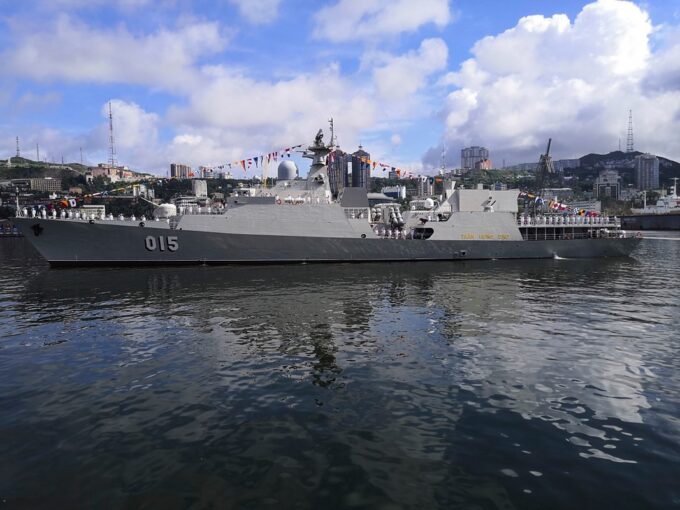 Z kolei we Władywostoku w defiladzie uczestniczyły: krążownik rakietowy RFS Wariag (011) projektu 1164 Atłant, niszczyciel rakietowy zwalczania okrętów podwodnych Admirał Tribuc (564) projektu 1155 Friegat (Udałoj), korweta rakietowa Sowiersziennyj (333) projektu 20380, korweta zwalczania okrętów podwodnych Sowiecka Gawań (MPK-125) projektu 1124M Albatros i konwencjonalny okręt podwodny B-494 Ust´-Bolszerieck projektu 877 Pałtus. W defiladzie gościnnie uczestniczyły również dwie wietnamskie fregaty rakietowe VPNS Trần Hưng Đạo (HQ-015) i Quang Trung (HQ-016), rosyjskiego projektu 11661E Gepard 3.9.