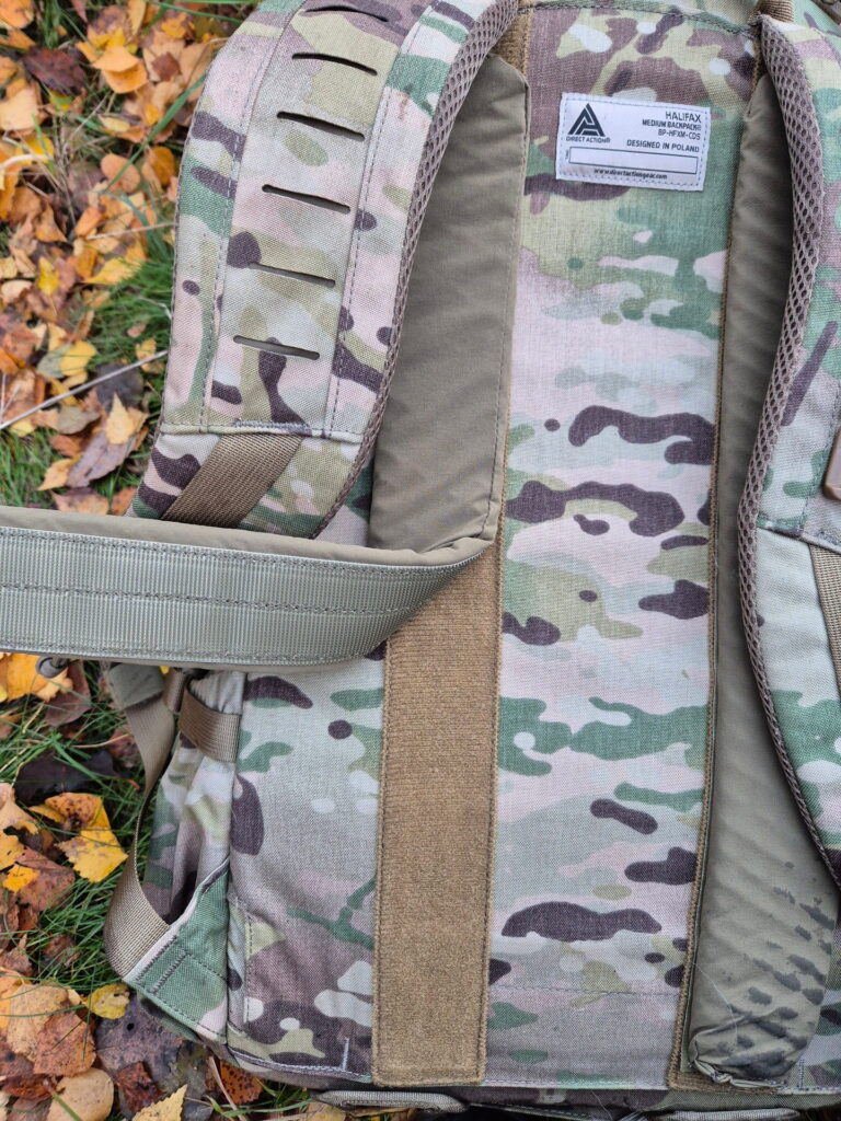 Opisany powyżej system nośny spełnia swoje zadanie. Jest bardzo rozsądnym kompromisem między wytrzymałością, prostotą a wygodą. Oczywiście nie powinniśmy oczekiwać od niego komfortu systemów znanych z plecaków turystycznych, jednak patrząc na rozwiązanie konkurencji segmentu taktycznego, Halifax nie ma się czego wstydzić. Musimy mieć na uwadze, że przy trudnym marszu system nie da rady odprowadzić ciepła z pleców, co skutkować będzie gorszą termiką. Problem ten możemy zminimalizować zmieniając comfortpady na lepiej dopasowane do naszych potrzeb. Na szelkach, tak samo jako na głównym worku znajdują się nacięcia PALS, które wykorzystywałem jako miejsce montażu końcówki Camelbaka i nawigacji GPS. Na Lekkiej Piechocie zdołałem zapakować się tylko i wyłącznie w Direct Action Halifax. Zapas amunicji, jedzenia, zapasowe ubrania, urządzenia nawigacyjne oraz broń. Ponad 15 kg sprzętu zamknięte w 40 litrowym plecaku.