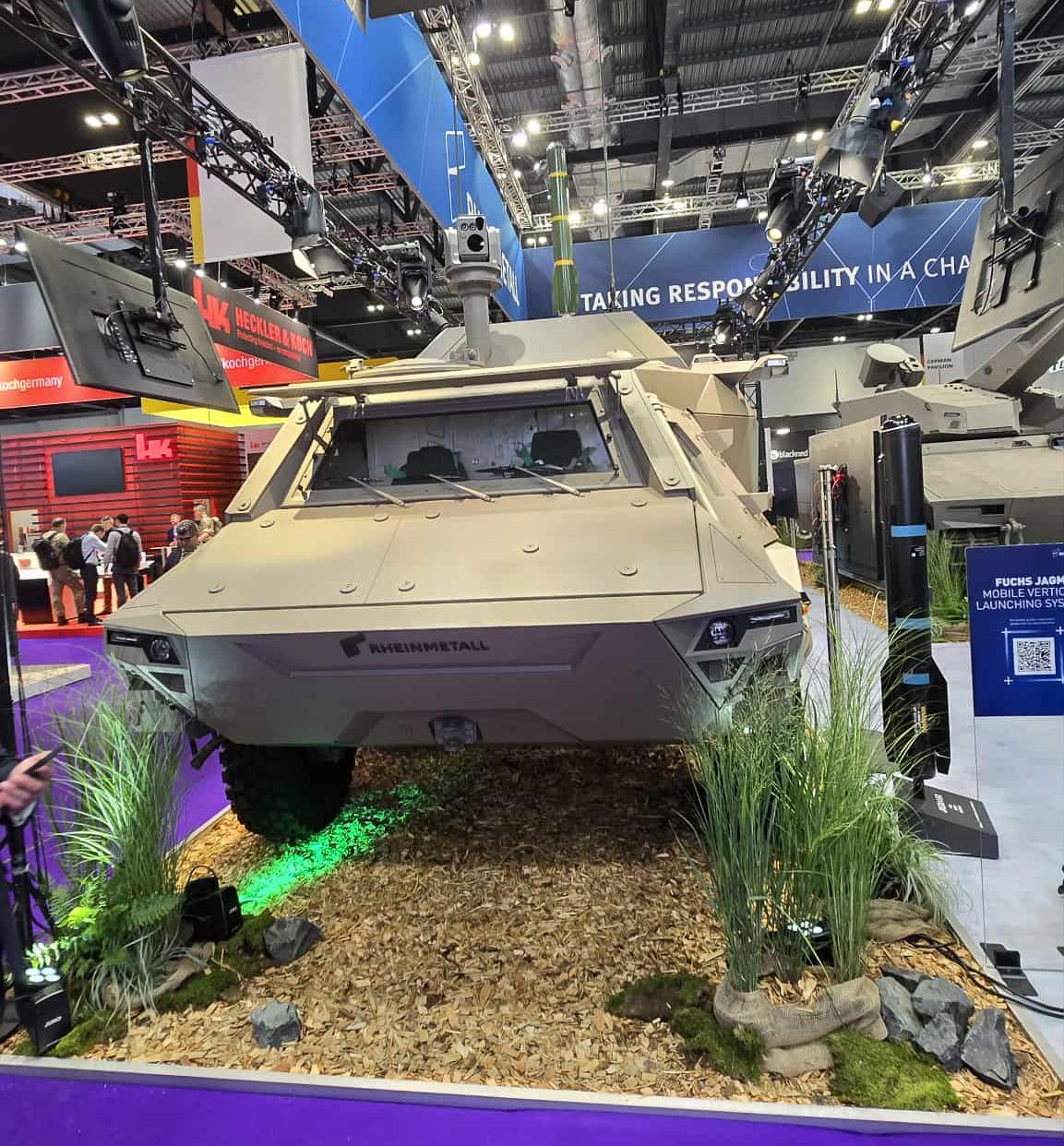 Na zaplanowanych na 9-12 września br. londyńskich targach przemysłu obronnego i bezpieczeństwa DSEI 2025 (Defence & Security Equipment International) w centrum Excel, niemiecka grupa Rheinmetall AG i amerykańska spółka Lockheed Martin zaprezentowały kołowy niszczyciel czołgów nowej generacji Fuchs JAGM (DSEI 2025: Rheinmetall zaprezentował lekki pojazd taktyczny i przeciwlotniczego drona).