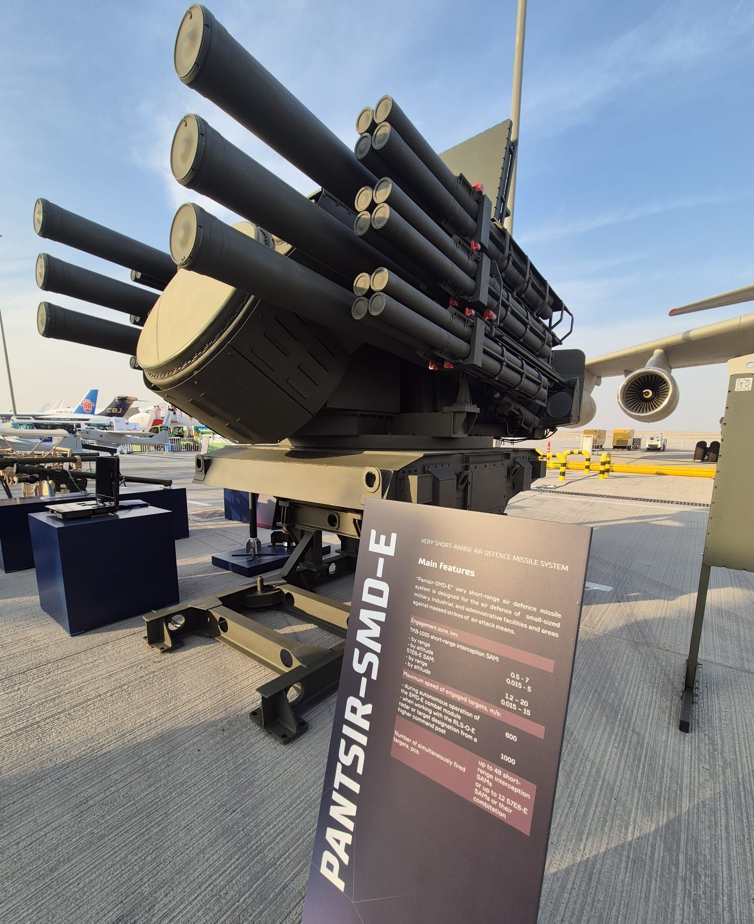 Podczas pokazów i wystawy lotniczej Dubai Airshow 2025 (zaplanowanych na 17-24 listopada), w międzynarodowym porcie lotniczym Dubaj-Al Maktoum w Jebel Ali, w Zjednoczonych Emiratach Arabskich, rosyjska państwowa spółka OAO RosOboronEksport zaprezentowała po raz pierwszy za granicą rakietowy zestaw przeciwlotniczy Pancyr-SMD-E.