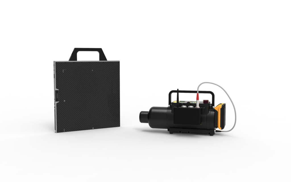 Zestaw systemu XIRÓS obejmujący emiter promieniowania rentgenowskiego, matrycę i terminal kontrolny / Zdjęcie: Logos Imaging