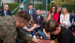 Spotkanie żołnierza w mundurze w swojej klasie, w swojej szkole, myślę, że dla dzieciaków, dla młodych osób jest bardzo dużym przeżyciem. Bo wciąż dla nas wielkim wyróżnieniem jest spotkanie się z żołnierzem. (…) Myślę, że po tych lekcjach, już dwóch edycjach, które mamy za sobą, jest wiele młodych osób i ich rodziców, bo to cała rodzina de facto jest tak przeszkolona, bo dzieciak przynosi do domu w niezwykły sposób informacje. Najważniejsze jest zdobywanie umiejętności – nauka pierwszej pomocy, procesy resuscytacji i wiele innych. (…) To trzeba powtarzać, ćwiczyć cały czas. Bardzo wiele szkół zgłosiło się do programu, bo prawie 4 tysiące i są kolejne zgłoszenia – zaznaczył podczas wydarzenia wiceprezes Rady Ministrów.