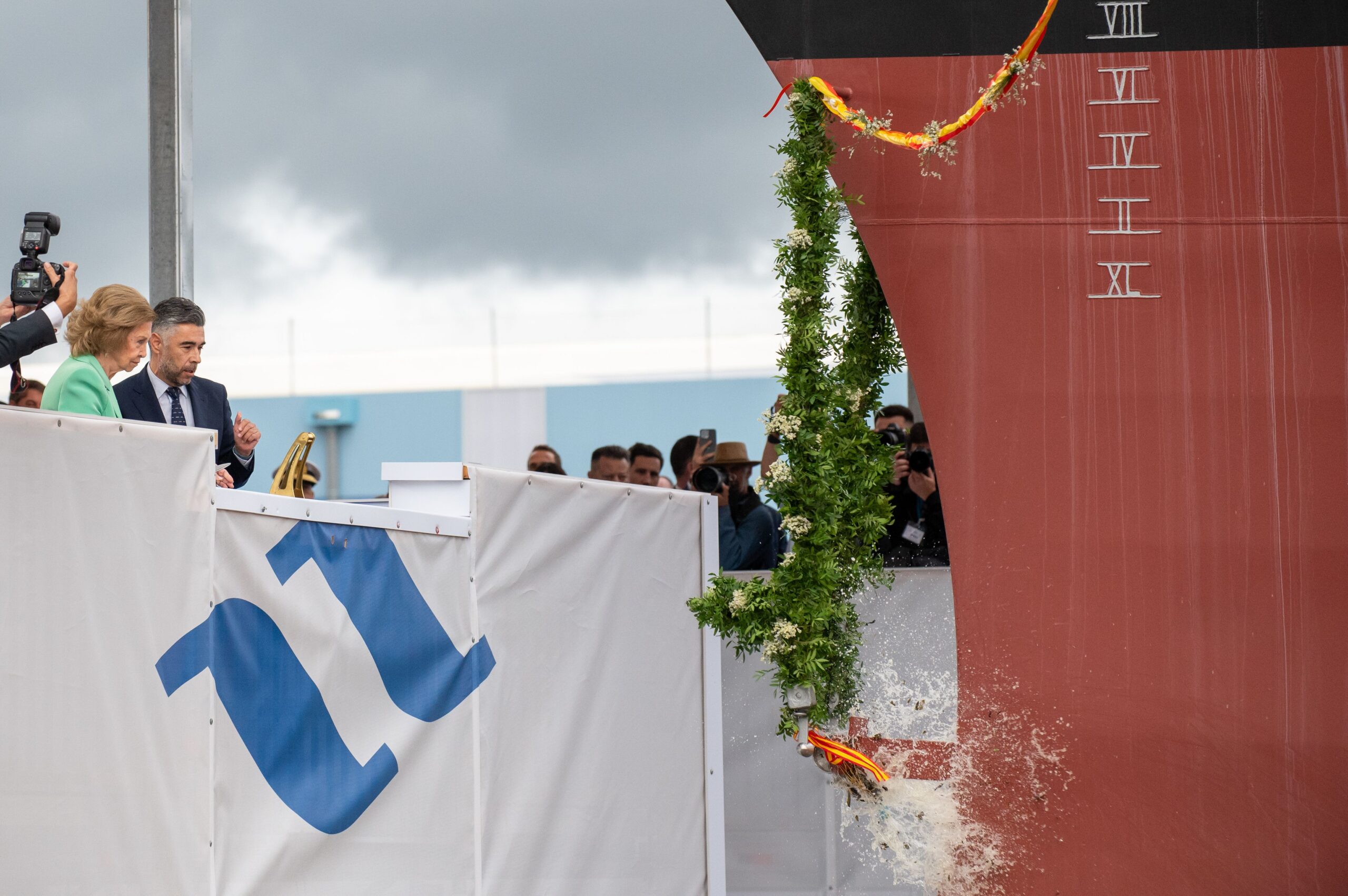 La Reina Sofía ha amadrinado, en el Astillero de Navantia (Ferrol), la botadura de la Fragata F111 “Bonifaz”, primera embarcación de la nueva serie de la Armada.