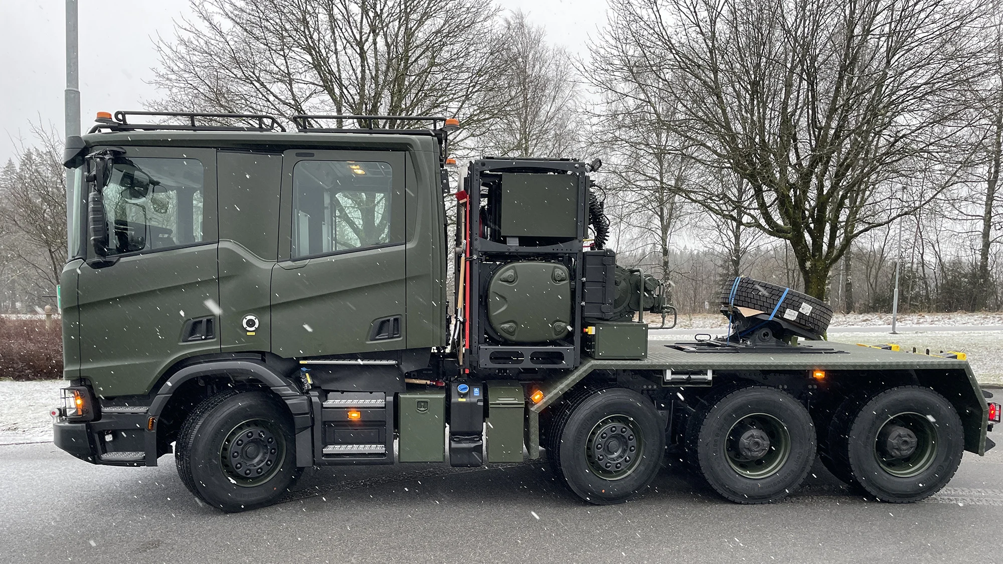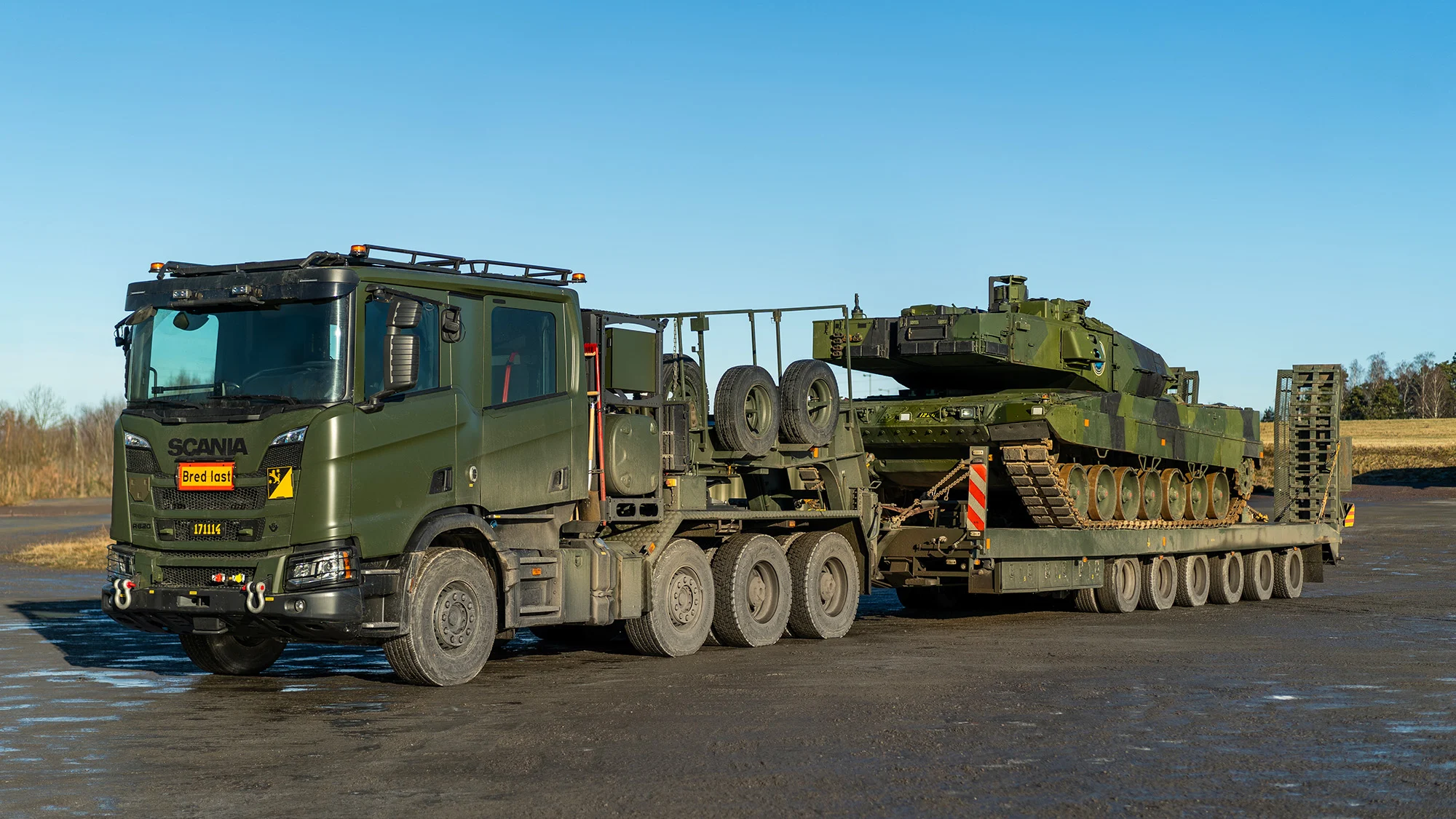 On Tuesday, 2 December 2025, the Swedish Defence Materiel Administration FMV (Försvarets materielverk), under the Ministry of Defence, announced the start of serial deliveries of the first Scania R620 XT 8×4/4 heavy tractor trucks. Earlier, since the end of January this year, a pre-series prototype had been undergoing testing.