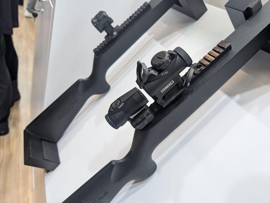 Oprócz lunet, Steiner oferuje również celowniki kolimatorowe. Na EnforceTac zaprezentowano typowo karabinowy model T1Xi wraz z powiększlanikiem oraz pistoletowy MPS.