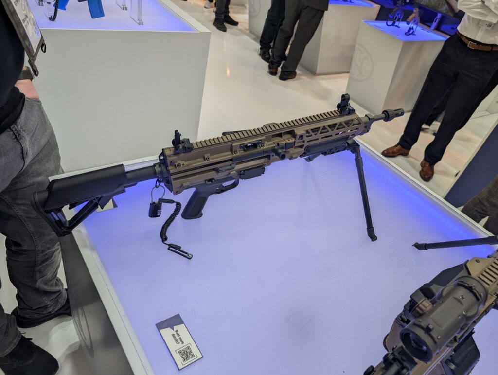 FN Herstal zaprezentował na tegorocznych targach Enforce Tac zarówno najnowsze odmiany ręcznych karabinów maszynowych rodziny Minimi Mk3 jak i stanowiące całkowicie nowe rozwiązanie km-y rodziny Evolys (Premiera FN Evolys). Na szczególną uwagę zasługuję Evolys dostosowany do amunicji 5,56 mm x 45. W porównaniu do innych ręcznych karabinów maszynowych, cechuje się znacznie niższą masą (5 500 g). Różnicę dało się prawdziwie odczuć po chwyceniu Evolysa i krótkiej manipulacji, w tym złożeniu się do strzału. Odczucia podobne były do obsługi karabinka na amunicję pośrednią wyposażonego w komplet akcesoriów. Odczucie to wzmagał fakt, że jest to broń ergonomicznie bardzo zbliżona do karabinków. Więcej o rkm Evolys w artykule Premiera FN Evolys.