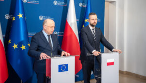 Wpisanie Tarczy Wschód jako strategicznego projektu obrony Europy, jako strategicznego projektu wzmacniania wschodniej flanki NATO i granicy Unii Europejskiej, w połączeniu z Bałtycką Linią Obrony, w połączeniu z umocnieniami na granicy fińsko-rosyjskiej, tworzy autentyczną barierę. Tworzy zaporę, różnego rodzaju fortyfikacje, systemy dronowe i antydronowe, z których będziemy mogli korzystać. To jest bezpieczniejsza Europa. To jest ta polityka, która moim zdaniem przyniesie skutek, jeżeli przez najbliższe lata efektywnie wykorzystamy środki, jeżeli je efektywnie spożytkujemy. Nie mamy za dużo czasu. Trzy lata to jest ten okres, który musi być najbardziej intensywny, żebyśmy doprowadzili do sytuacji, w której żadnemu wrogowi cywilizacji Zachodu, żadnemu wrogowi Unii Europejskiej nie będzie się opłacało zaatakować. Będzie się bał po prostu zaatakować. Tylko siła obroni pokój. Tylko siła obroni wolność, tylko inwestycje, przemysł zbrojeniowy, zakupy i najlepiej wyposażone nasze armie narodowe. Silne armie, które buduje każdy z nas i silny sojusz. (…) Zapraszam wszystkich do współpracy, do otwartej dyskusji, do wsparcia pana komisarza w jego działaniach na rzecz szybkiej implementacji Białej Księgi, wyasygnowania funduszy, dokonania przesunięć w funduszach własnych, już przyznanych naszym państwom członkowskim. Zapraszam do realizacji strategii Białej Księgi, strategii budowy silnej Europy, najsilniejszego, najbezpieczniejszego kontynentu na świecie – mówił wiceprezes Rady Ministrów.