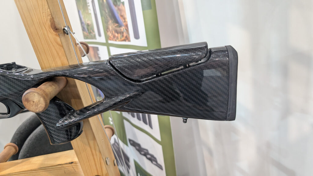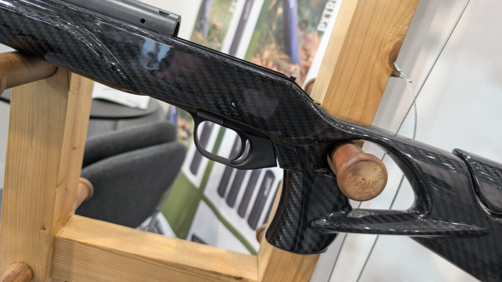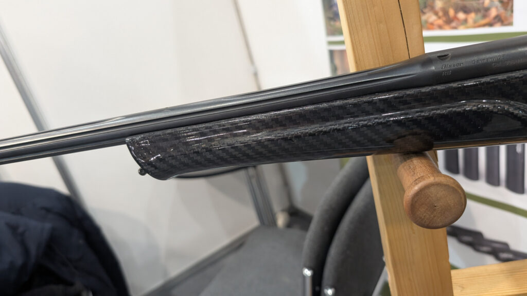 Na stoisku zaprezentowano system karabinu Blaser R8 w wykonywanej na zamówienie osadzie z włókna weglowego. Osada cechowała się wyrafinowaną geometrią, wyprowadzony prostym chwytem (typu thumbhole), regulowaną na wysokość baką oraz wyprofilowanym łożem.