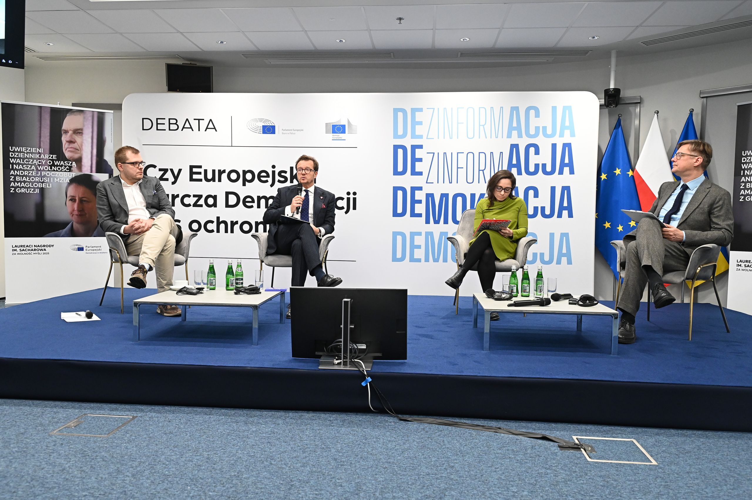 Katarzyna Smyk z Komisji Europejskiej wskazała na spadek zaufania do demokracji spowodowany dezinformacją i kryzysem mediów tradycyjnych. Europoseł Michał Wawrykiewicz mówił o planowych, manipulatywnych narracjach szerzonych w mediach społecznościowych i przez populistycznych polityków, służących osłabieniu Unii. Zagrożenia obejmują także cyberataki i dywersję ze strony państw autorytarnych. Przeciwdziałać im mają akty prawne UE, takie jak DSA, AI Act oraz nowa strategia — Europejska Tarcza Demokracji. W jej ramach powstanie program Agora EU z budżetem 9 mld euro dla organizacji społeczeństwa obywatelskiego, które będą wspierać edukację i fact-checking.