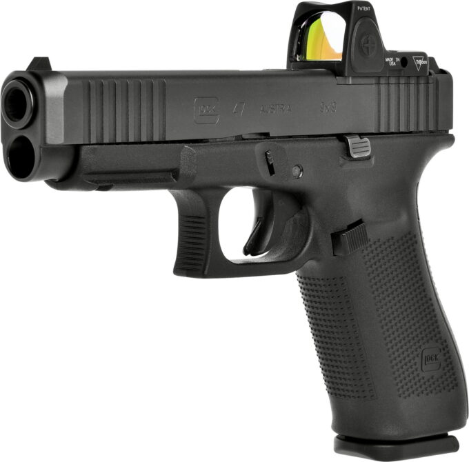 GLOCK Modular Optic System to system płytek montażowych umożliwiających montaż kolimatora do zamka pistoletu. Dostarczany był dotychczas jako 4 płytki z każdym wariantem MOS. W przypadku nowych G47 MOS, G20 Gen5 MOS oraz G21 Gen5 MOS, otrzymujemy jedną płytkę kompatybilną z kolimatorami marek Trijicon, Ameriglo oraz Holosun (z wyjątkiem wariantu 509). Warto więc sprawdzić kompatybilność docelowego zestawu przed zakupem jednego z trzech opisywanych modeli. (https://us.glock.com/en/learn/glock-pistols/mos)