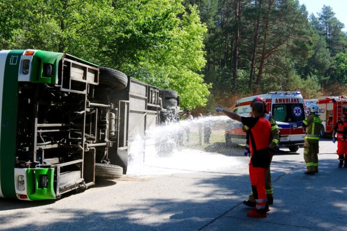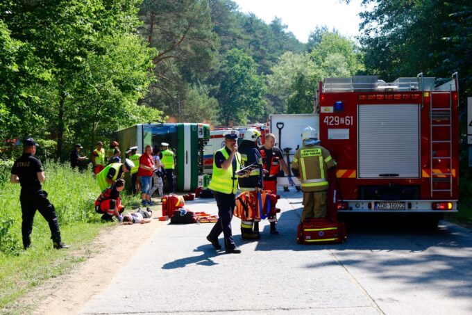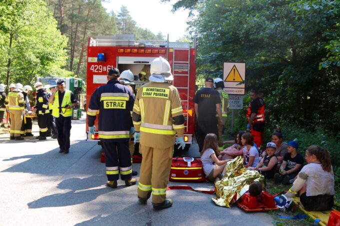 Na miejsce, powiadomione już służby ściągnęły pokaźne siły Straży Pożarnej, wraz z ratownictwem chemicznym, nadjechała Policja i karetki pogotowia a wkrótce żołnierze WOT. Jak wkrótce ustalono, w autokarze było aż 25 osób. Akcją ratunkową zajęli się strażacy i inne służby ratownicze, z poszukiwanie zaginionych osób zaangażowany został Naziemny Zespół Poszukiwawczo-Ratowniczy (NZPR) ze 141. batalionu lekkiej piechoty WOT z Choszczna oraz policjanci.