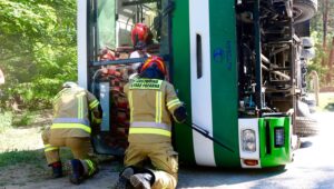 Na miejsce, powiadomione już służby ściągnęły pokaźne siły Straży Pożarnej, wraz z ratownictwem chemicznym, nadjechała Policja i karetki pogotowia a wkrótce żołnierze WOT. Jak wkrótce ustalono, w autokarze było aż 25 osób. Akcją ratunkową zajęli się strażacy i inne służby ratownicze, z poszukiwanie zaginionych osób zaangażowany został Naziemny Zespół Poszukiwawczo-Ratowniczy (NZPR) ze 141. batalionu lekkiej piechoty WOT z Choszczna oraz policjanci.