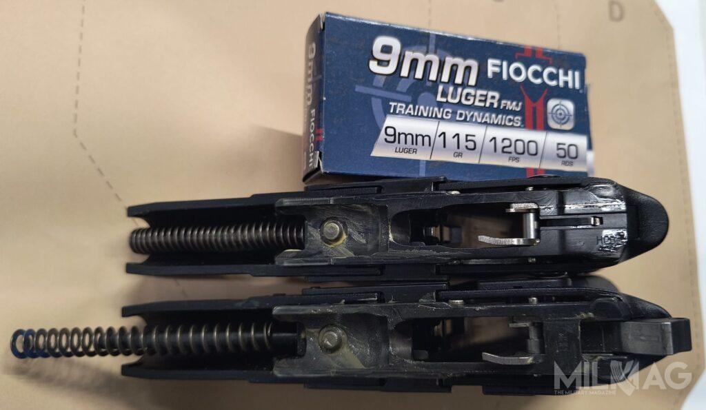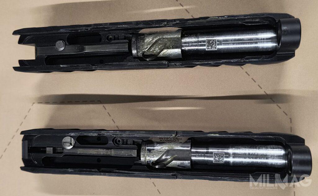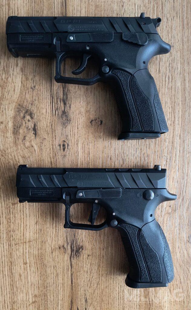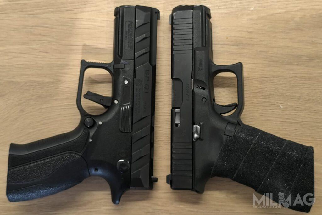 Jak już jesteśmy w tej okolicy broni, to od razu rzut oka i porównanie tylnej części szkieletów obu pistoletów, po zdjęciu zamków. Widać podobieństwa w budowie szkieletów, ale też różnice z uwagi na system kurkowy w GP P1 MK23.