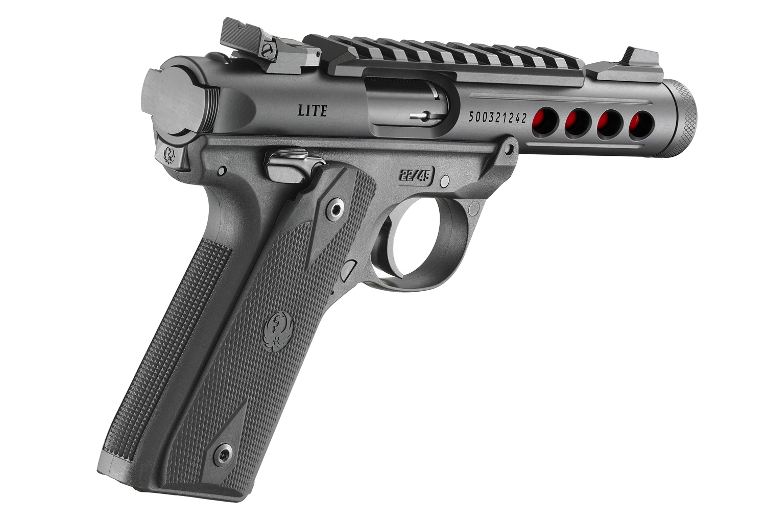 Kolejną nowością w tej linii jest Mark IV w wydaniu 22/45 LITE (43942), cechujący się czarnym wykończeniem z delikatnym akcentem czerwieni na lufie, prześwitującej przez wycięcia w jej rękawie. Subtelna stylistyka z delikatnym, jaskrawym wyróżnieniem. Jest to pistolet all-inclusive, wyposażony w regulowaną szczerbinę, szynę pod optykę oraz gwint pod urządzenie wylotowe.