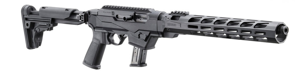 Przechodząc do konstrukcji samopowtarzalnych – na stanie sklepu znajdą się karabinki na nabój pistoletowy PC Carbine w dwóch wariantach: standardowym (9 mm x 19 Para, 19100) oraz sportowym (9 mm x 19 Para, 19140), wyposażonym w regulowaną kolbę, chwyt AR oraz długie łoże M-LOK.
